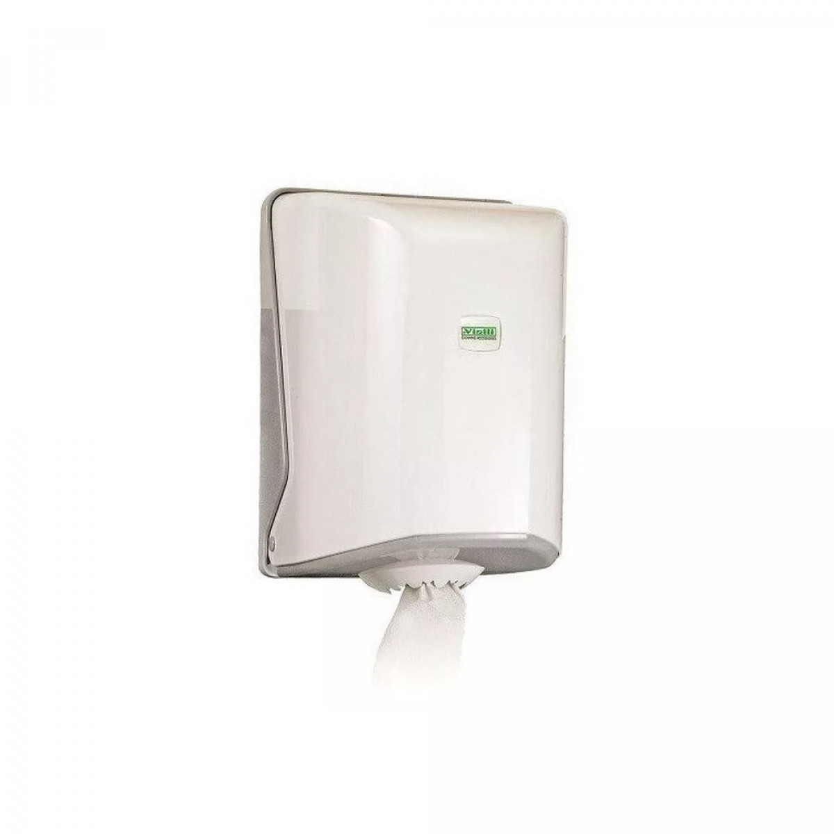 Vialli tekercses kéztörlő adagoló. 19 cm átmérőjű belső mag adagolású papír kéztörlővel használható. Az adagoló nyílása tépőfogakkal van ellátva, így perforált és perforáció nélküli papírral is használható.
