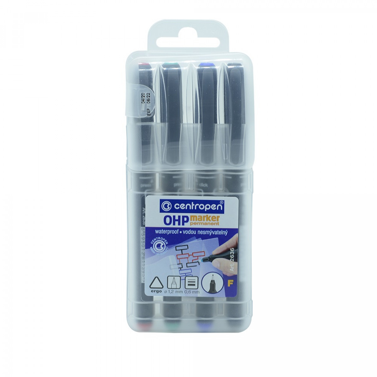 Alkoholos marker készlet, 0,6mm, F OHP Centropen 2636, 4 klf. szín bemutatása