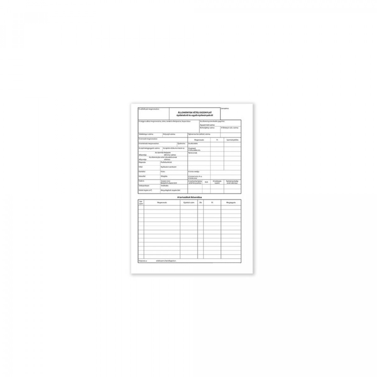 Állománybavételi bizonylat épületekről és építményekről B.11-45/V 25x4lapos tömb A4, álló bemutatása