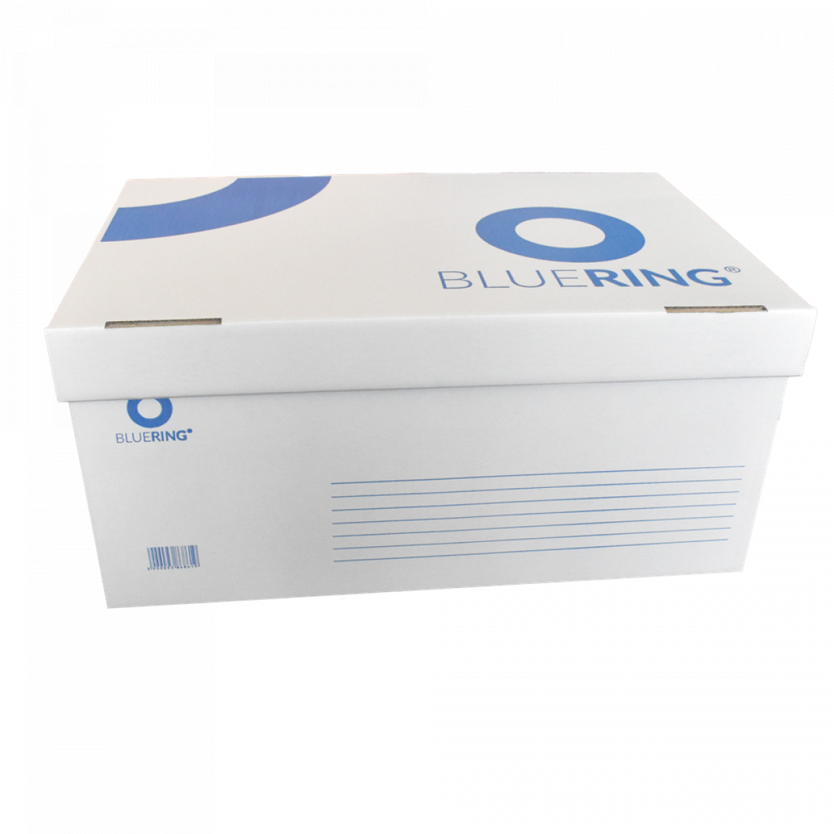 Archiváló konténer karton doboz fedeles 54x36x25cm, felfelé nyíló tetővel Bluering® fehér-kék