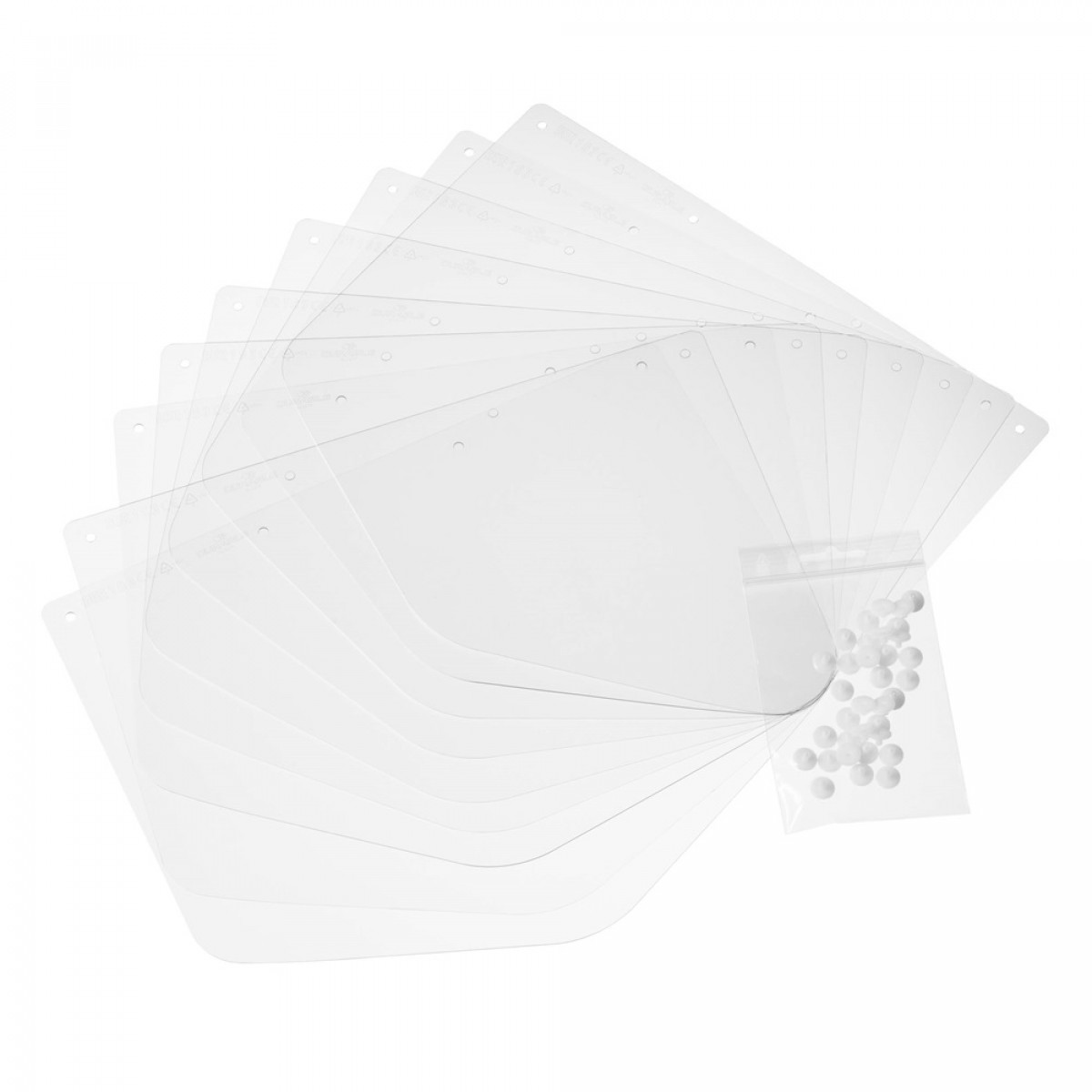 10 cserefólia a 343310-es arcvédőhöz -A fóliák könnyen cserélhetők és rögzíthetők -Könnyen tisztítható és fertőtleníthető -A cserefólia védőréteggel ellátott a szállítás közbeni karcolások elkerülése érdekében. Katalóguskód: 36845