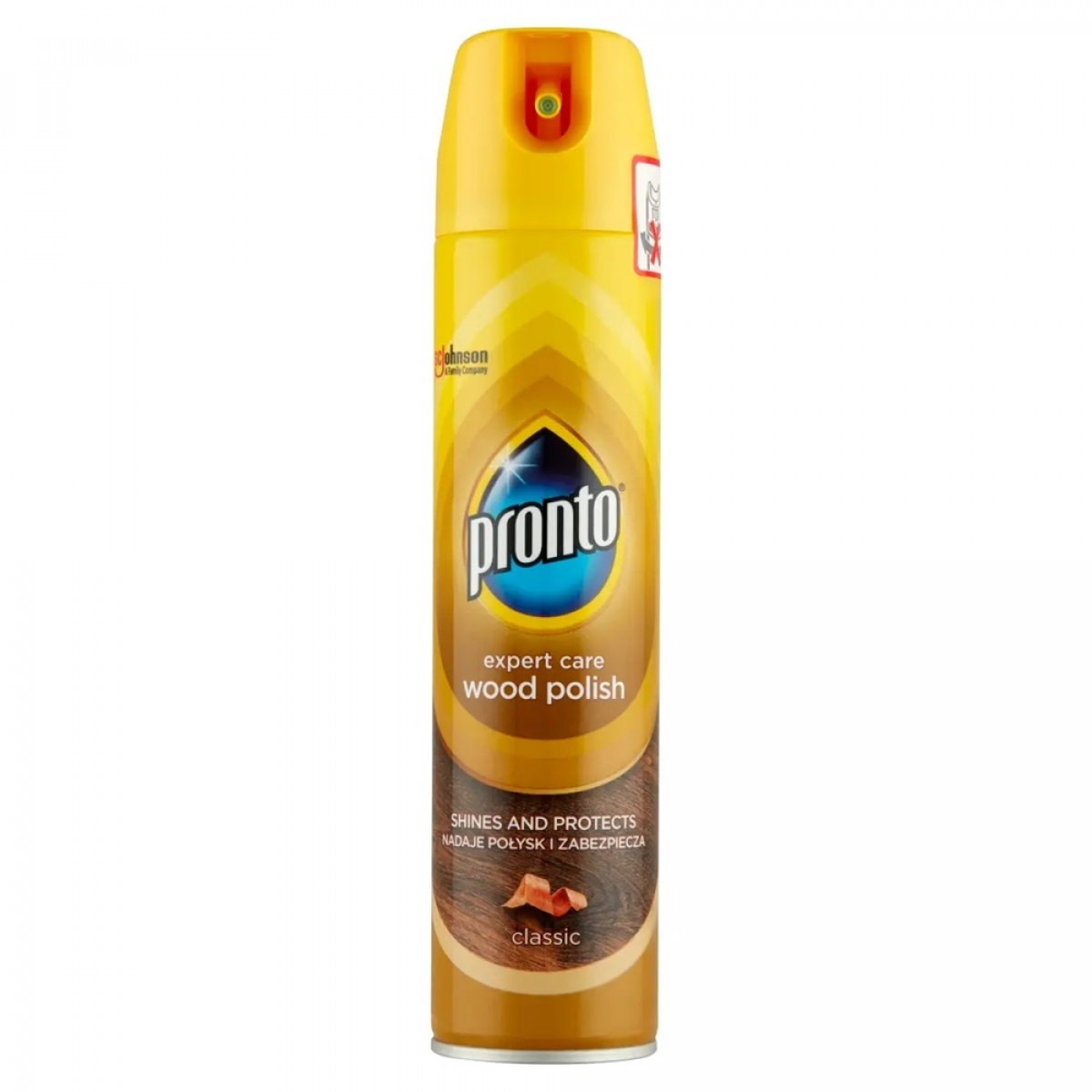 A Pronto® Expert Care Classic bútorápoló aeroszol kiemeli a kezelt fabútorok szépségét azáltal, hogy könnyedén eltávolítja a port és az ujjlenyomatokat, valamint fényes védőbevonatot biztosít anélkül, hogy bármilyen zsíros, viaszos nyomot hagyna maga után. Biztonságosan alkalmazható minden kemény, kezelt felületen. Az alábbi felületeken használható: kezelt fabútorok, bőrfelületek, gránit, rozsdamentes acél, laminált, kvarc.