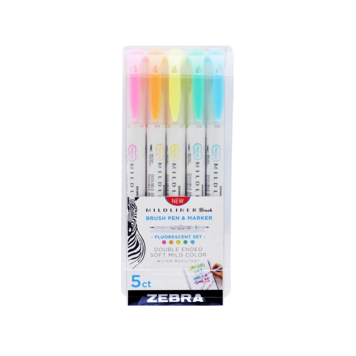 Ecsettoll készlet, kétvégű Zebra Mildliner Fluorescent, 5 különböző szín bemutatása