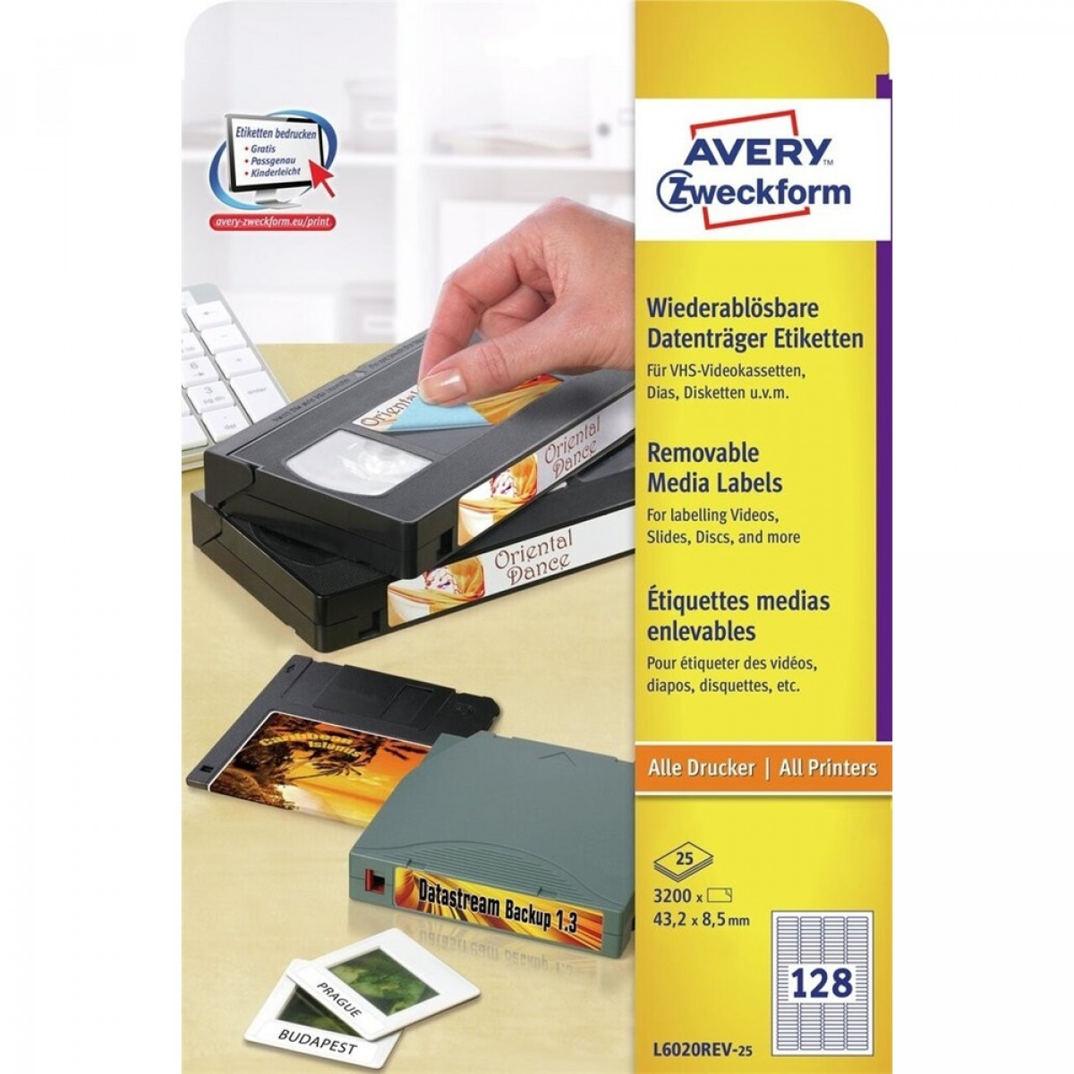 Az Avery Zweckform L2020REV-25 cikkszámú fehér, visszaszedhető, 43,2x8,5 mm méretű diacímke tökéletes a diák ideiglenes felcímkézéséhez. A 3200 db címke 25 íven, megbízhatóan tapad ugyanakkor ragasztómaradvány nélkül eltávolítható. Környezetbarát, FSC® minősítésű és klórmentes eljárással fehérített. Tervezze meg és nyomtassa ki diacímkéit könnyen és gyorsan - ingyenes sablonokért és az Avery® Design&Print online szoftverért látogasson el a www.avery.hu/szoftver weboldalra. Minden ismert hagyományos tintasugaras és lézer nyomtatóval nyomtatható és fénymásolható. Katalóguskód: 26395