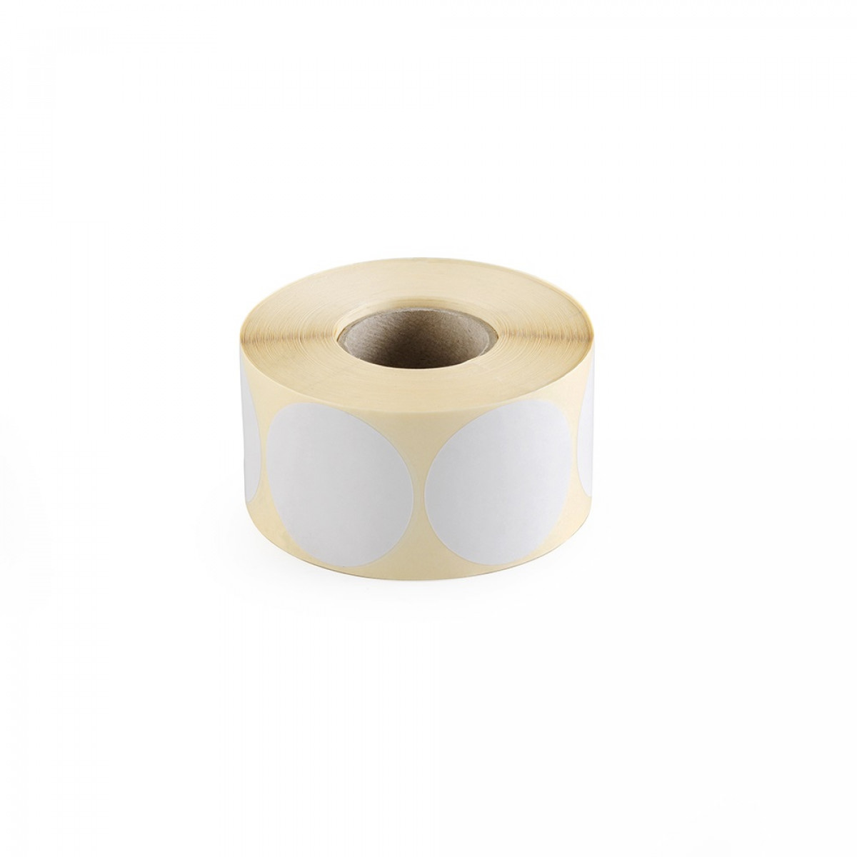 Nyomásra tapadó fehér,kör alakú etikett címke, 50mm átmérőjű,1000CÍMKE/TEKERCS, cséve belső átmérő 40mm Katalóguskód: 12385