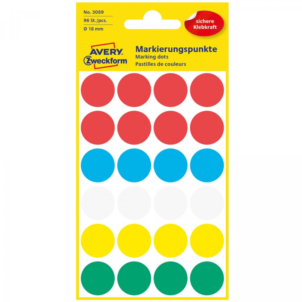 Etikett címke, o18mm, jelölésre, 5 klf. szín 24 címke/ív, 4 ív/doboz, Avery vegyes bemutatása