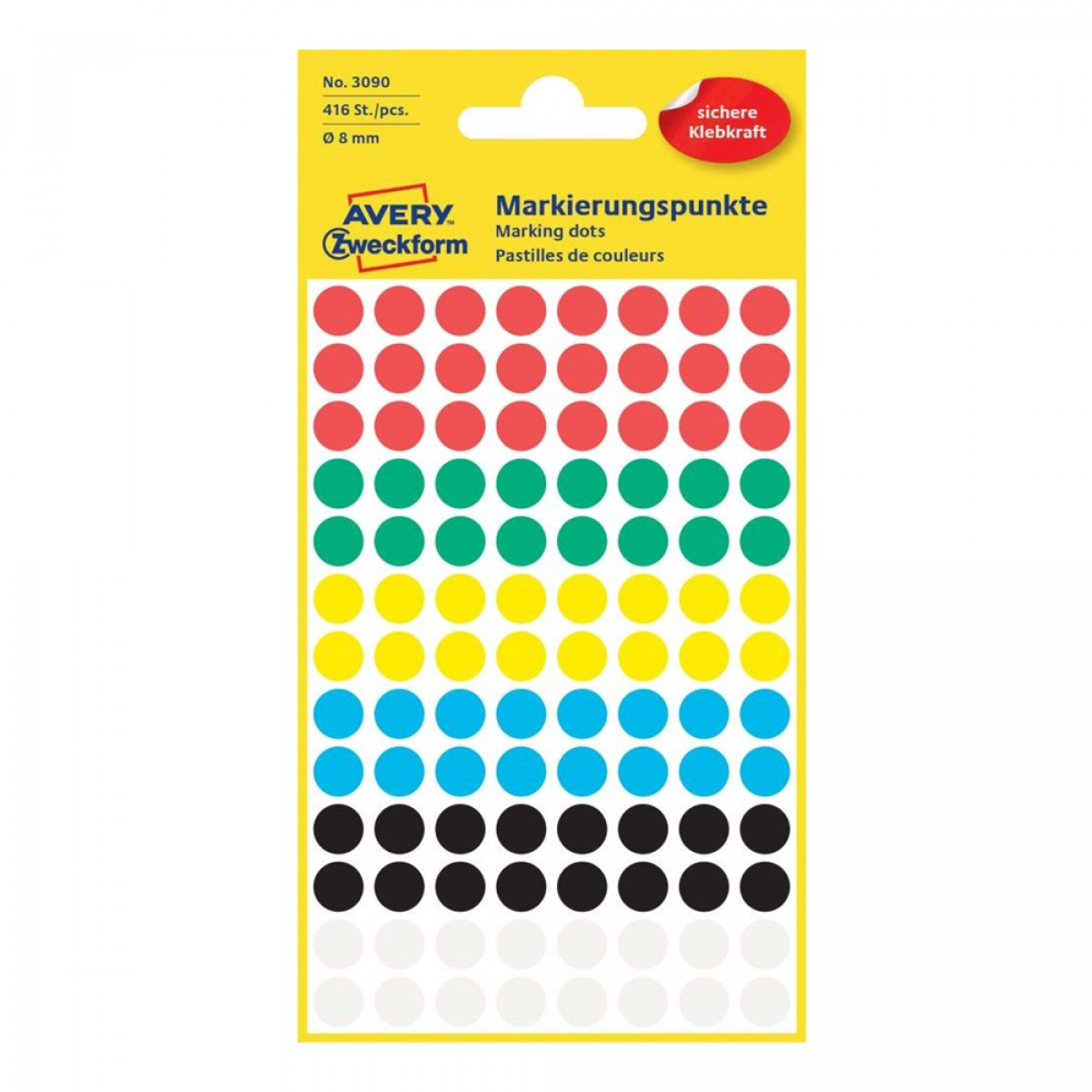Címke mérete: 8 mm Csomag tartalma: 416 jelölőpont/csomag Az AVERY ZWECKFORM jelölőpontok tökéletesek jelölésre, rendszerezésre, tervezésre, iratrendezésre. Katalóguskód: 25367