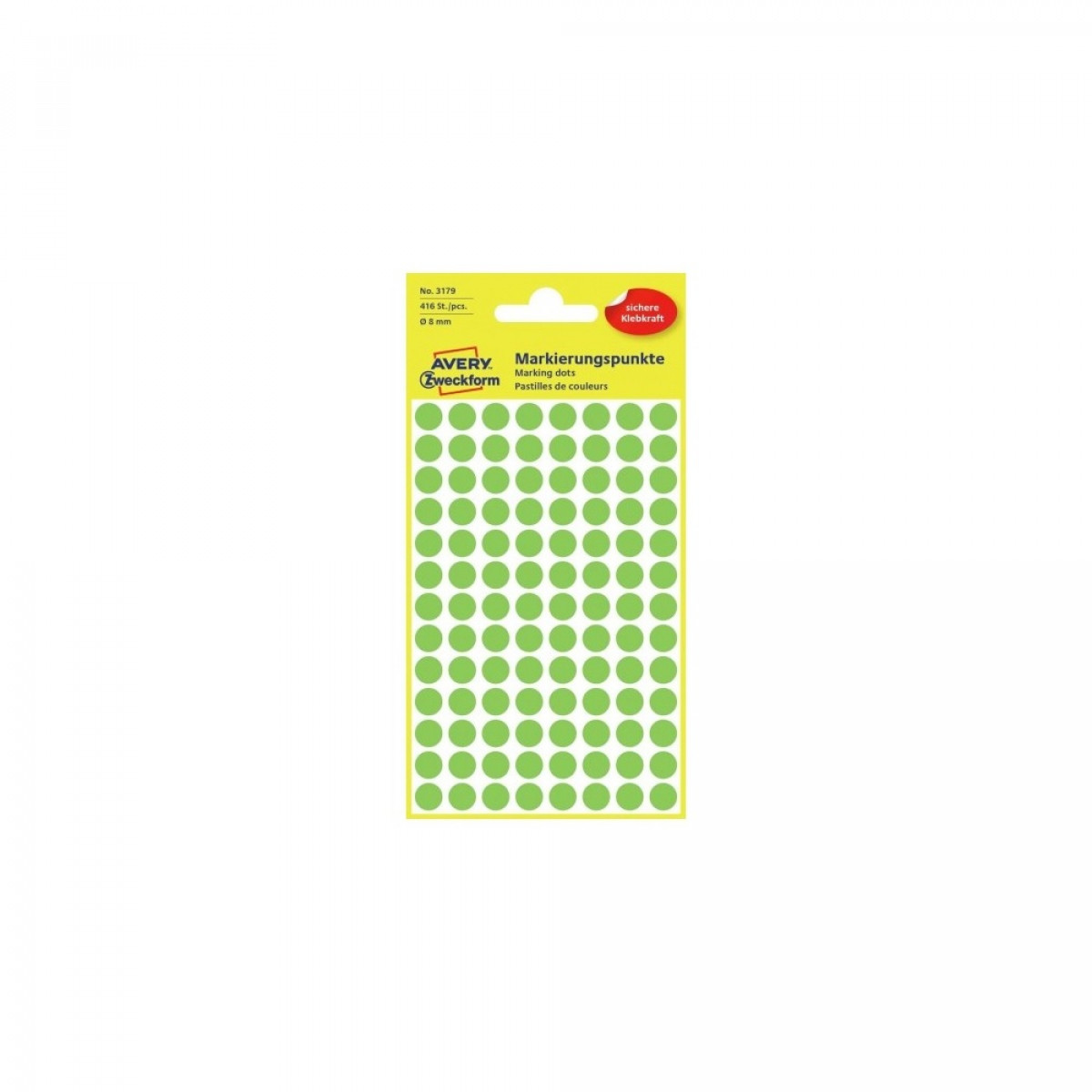 Etikett címke, o8mm, jelölésre, neon 104 címke/ív, 4 ív/doboz, Avery zöld
