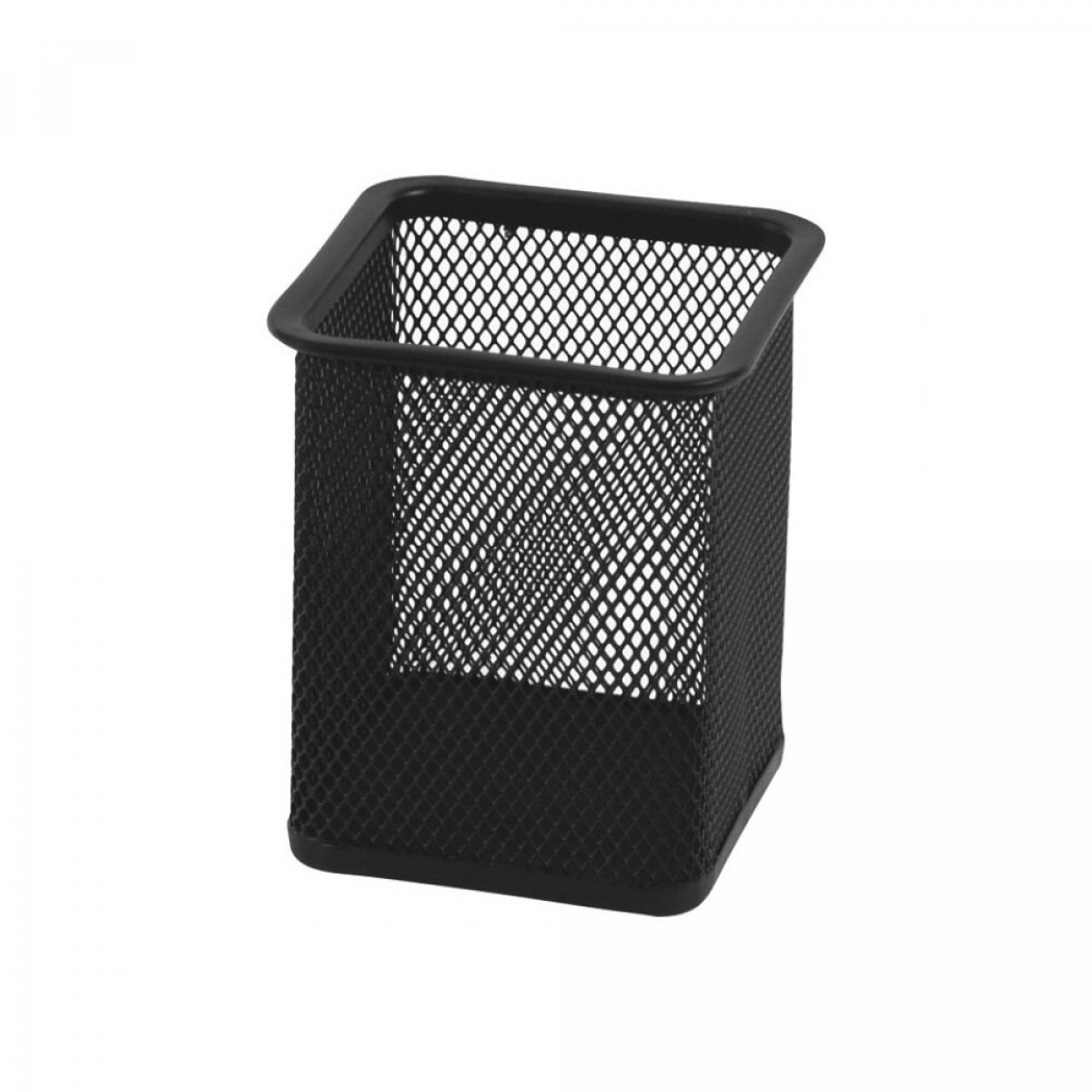 Praktikus, fémhálós kialakítású szögletes írószertartó pohár fekete színben. Tartós, stabil kivitel, amely rendezetten tartja a tollakat, ceruzákat és kisebb irodai eszközöket. Modern, letisztult megjelenésének köszönhetően bármely irodai munkaasztalon jól mutat. Méretei: 8x8x9,8 cm, 96 db / karton. Katalóguskód: 66079