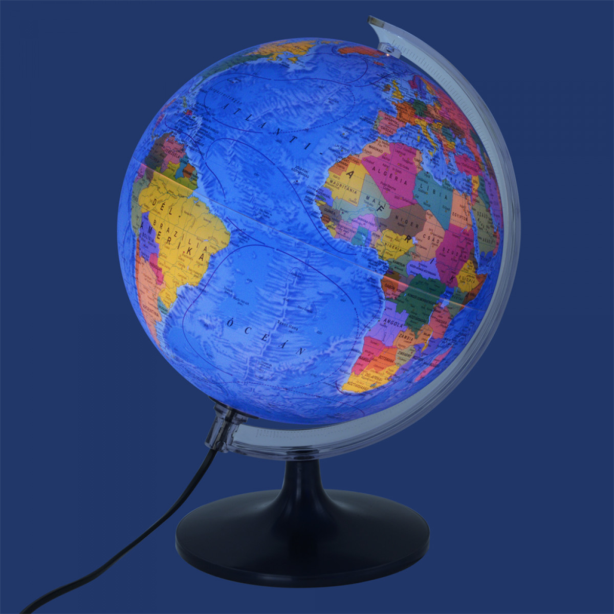 Földgömb 25 cm-es politikai megvilágított bemutatása