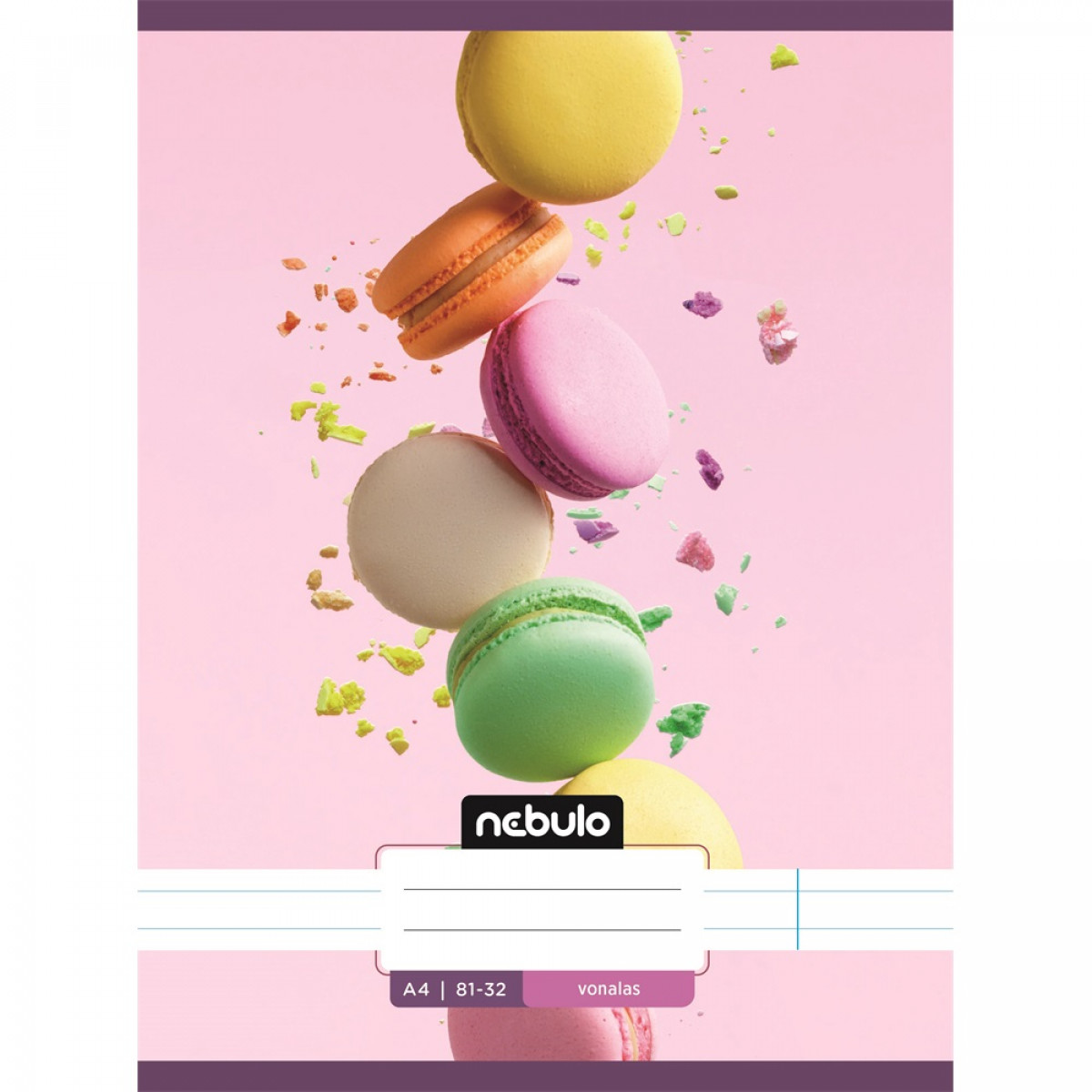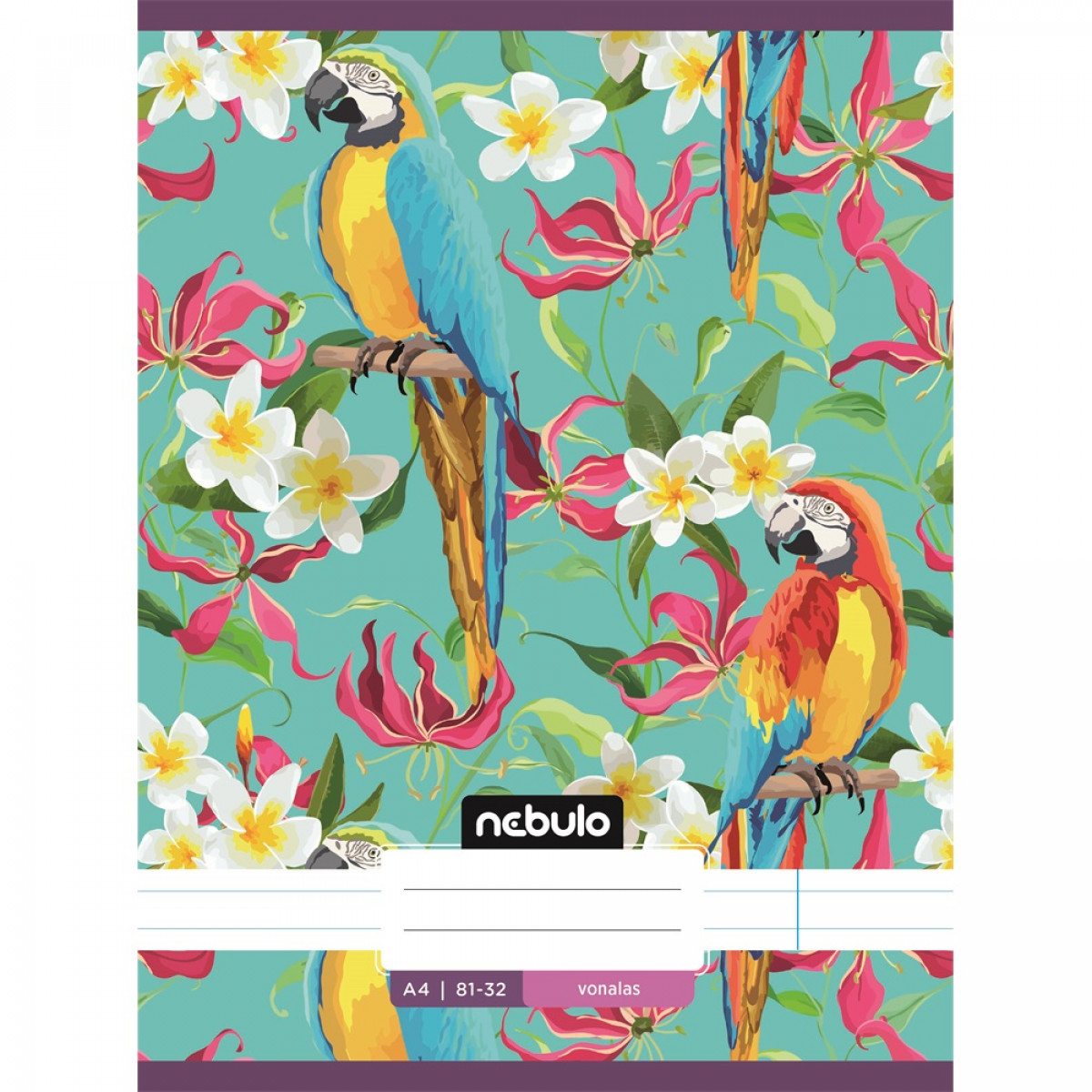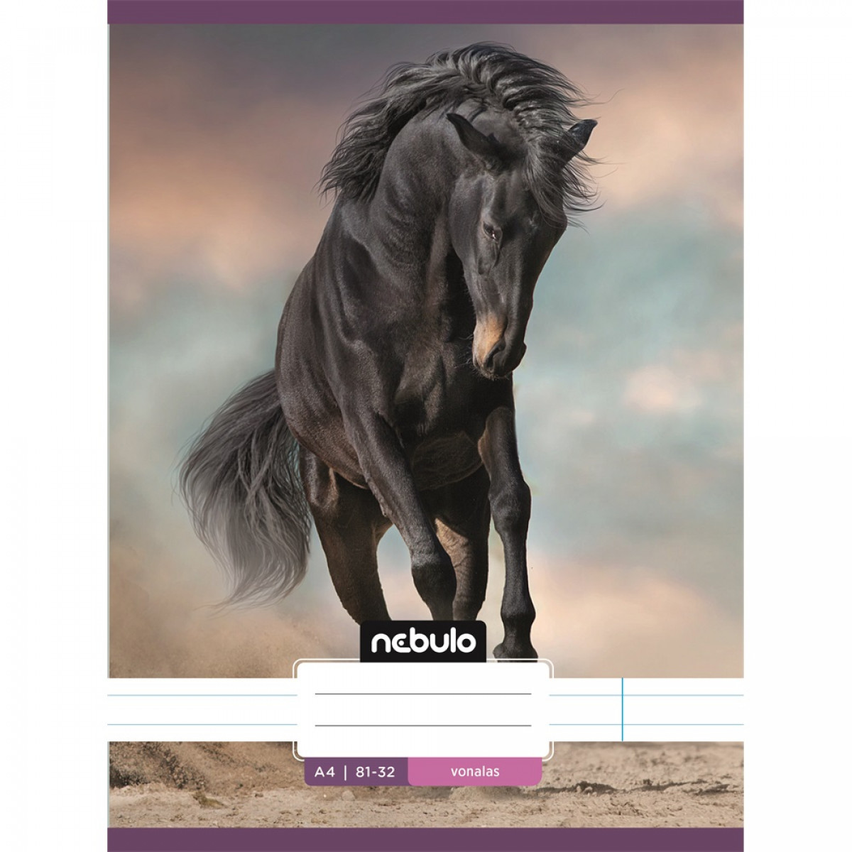 A/4-es tűzött iskolai vonalas füzet, 32 lapos (81-32). 12 db füzet (12 különböző minta) van egy csomagban. 70 g-os füzetlapok és 200 g-os műnyomó borító fényes fóliával.