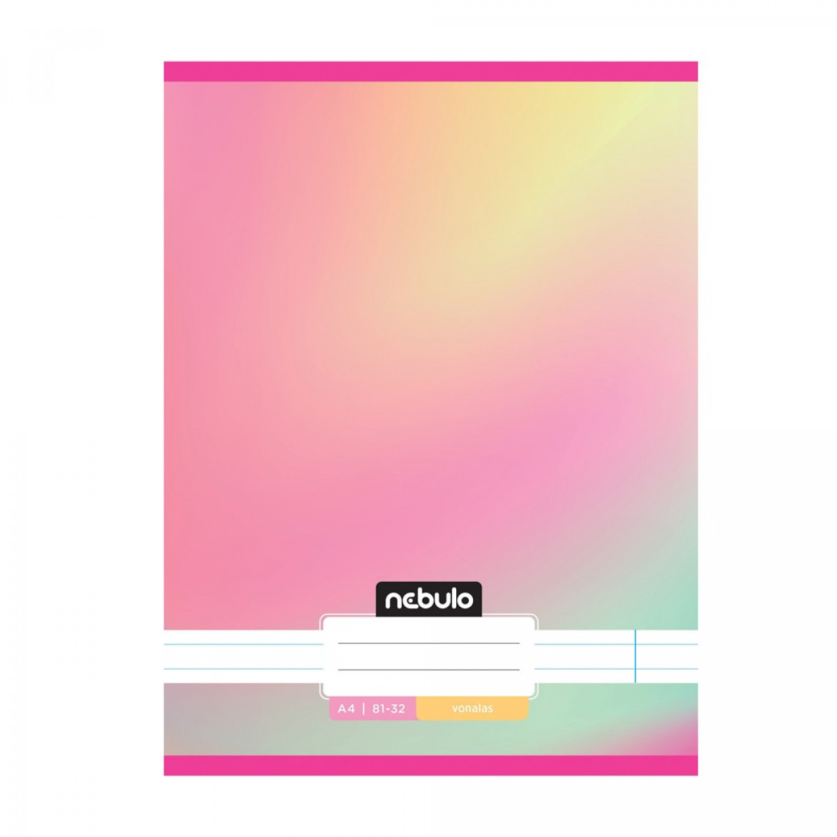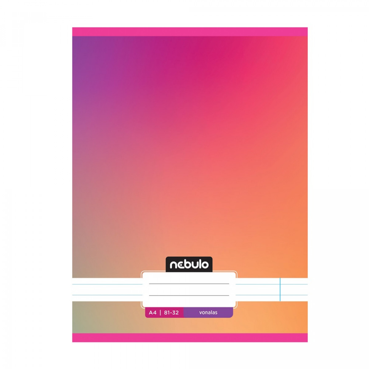 A/4-es tűzött iskolai vonalas füzet, 32 lapos (81-32). 12 db füzet (6 különböző minta: Monochrome=egyszínű, Gradient=színátmentes, 2db / minta) van egy csomagban. 70 g-os füzetlapok és 200 g-os műnyomó borító fényes fóliával.