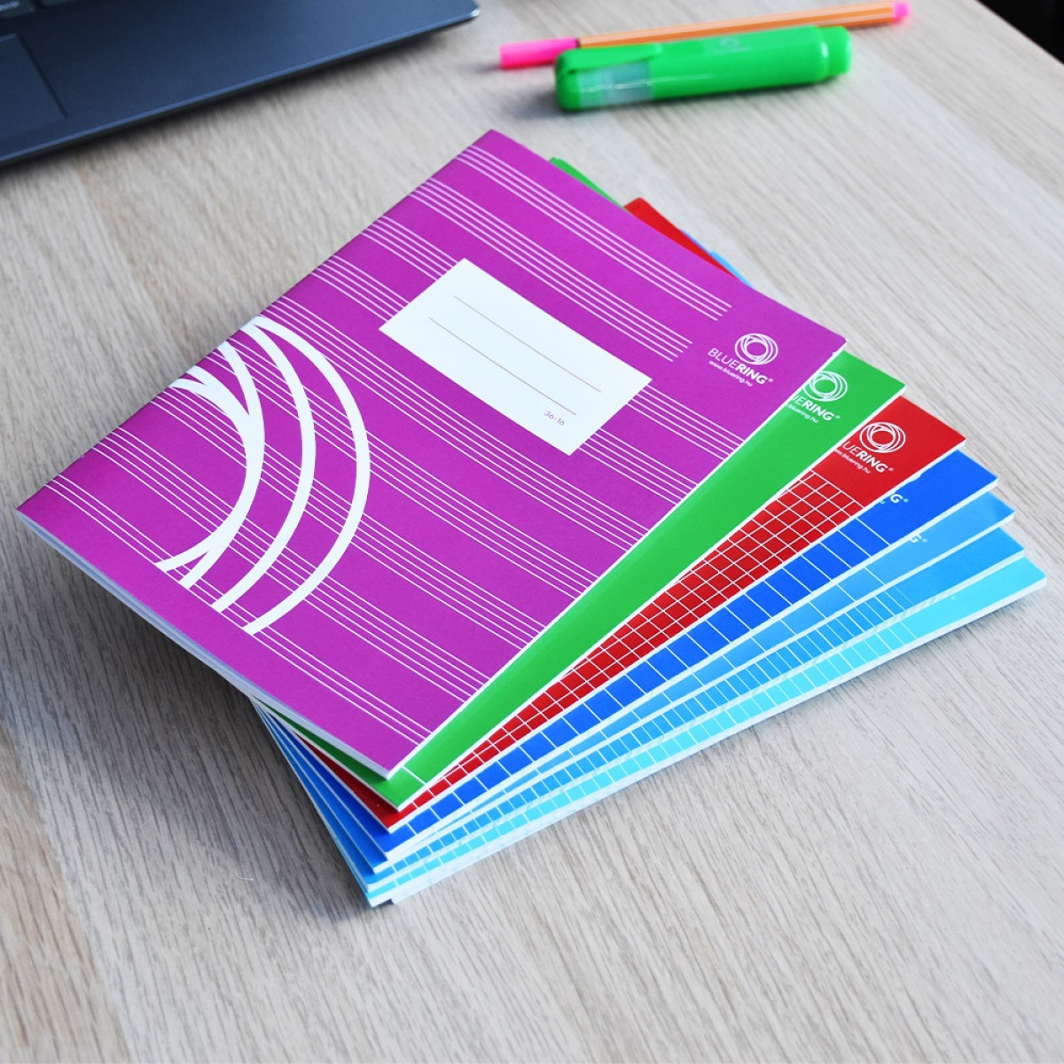 Minőségi A5 méretű 32 lapos iskolai tűzött füzetek, amelyek famentes fehér, 70gr/m2 ofszet papírból készültek. Borító alapanyaga 170gr/m2.