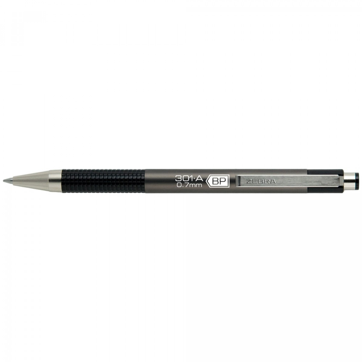 Golyóstoll 0,7mm, metál antracit test, Zebra F-301A, írásszín kék