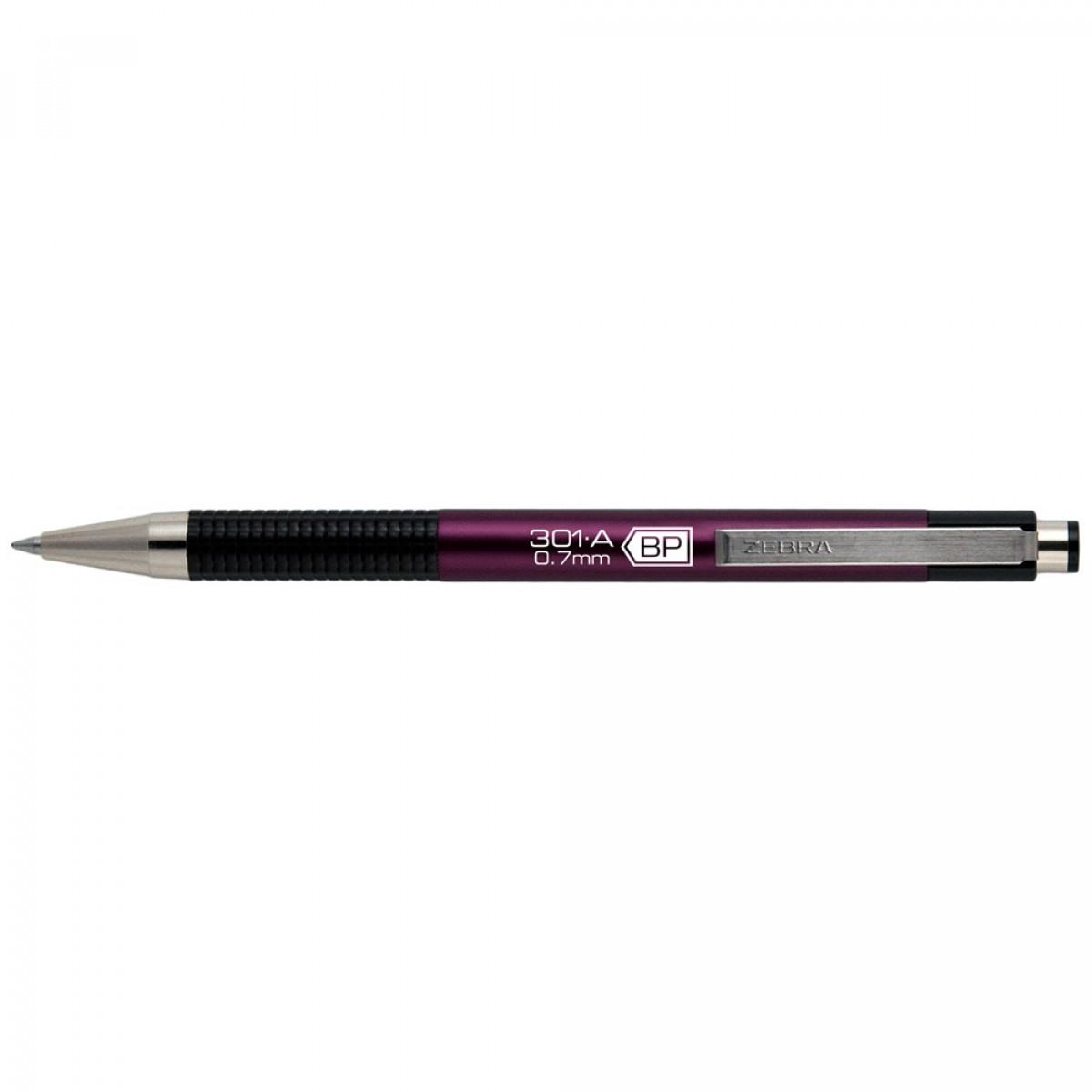 Golyóstoll 0,7mm, metál mályva test, Zebra F-301A, írásszín kék