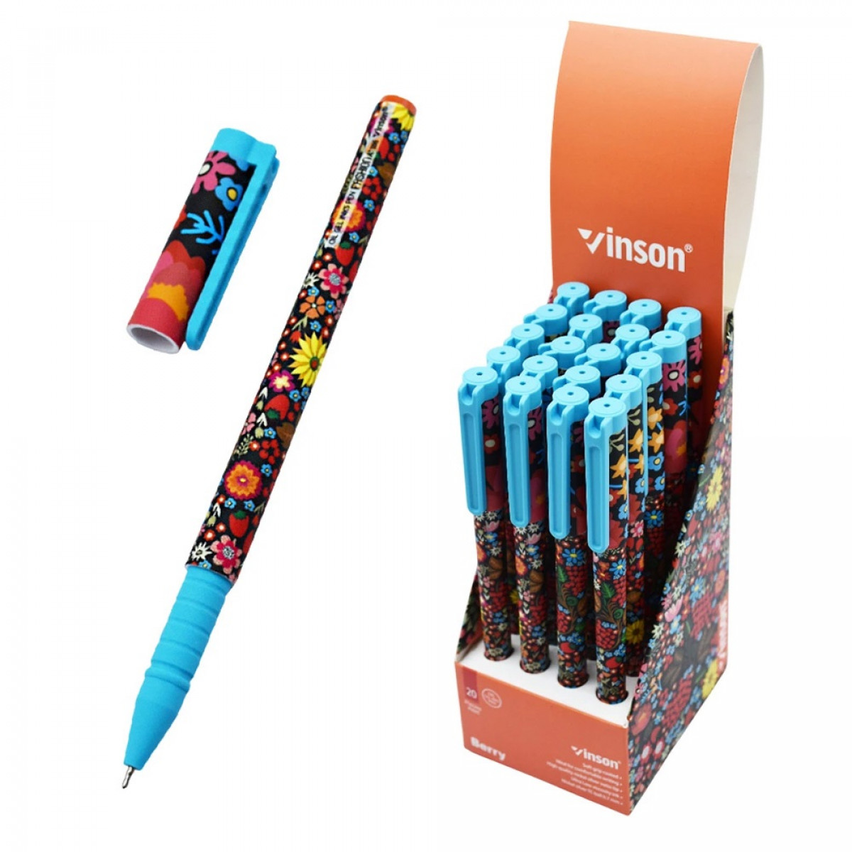 Golyóstoll kupakos, 0,7mm Vinson Berry A186 vegyes test displ 20 db/display bemutatása