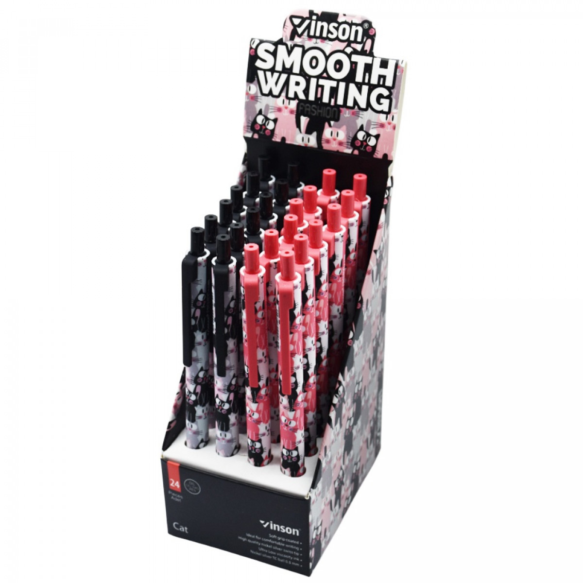 Golyóstoll nyomógombos 0,7mm Vinson Cat F2 vegyes test displ 24 db/display bemutatása