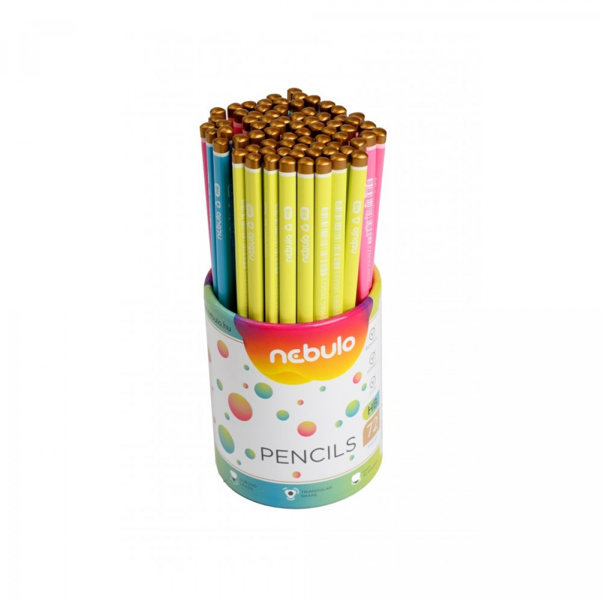 Grafitceruza HB, háromszögletű, 72 db/doboz, Nebulo, élénk színű test bemutatása