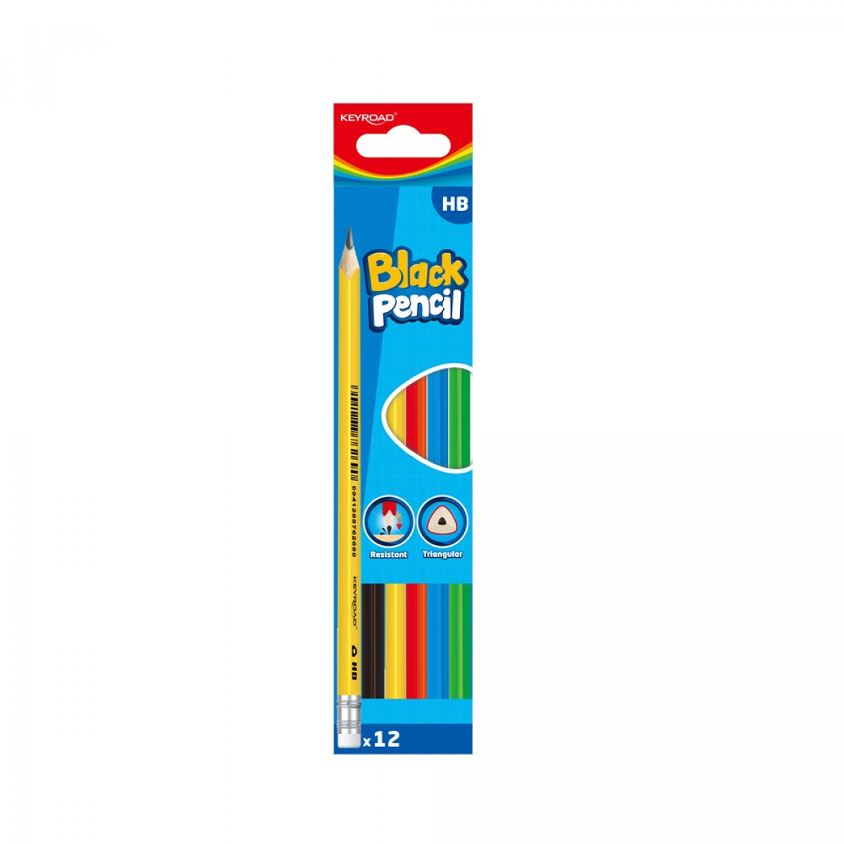 Grafitceruza, HB, radíros, háromszögletű, 12 db/bliszter, Keyroad, vegyes színek bemutatása