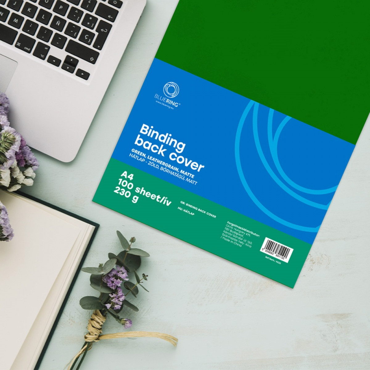 Hátlap, A4, 230 g. bőrhatású 100 db/csomag, Bluering® zöld bemutatása