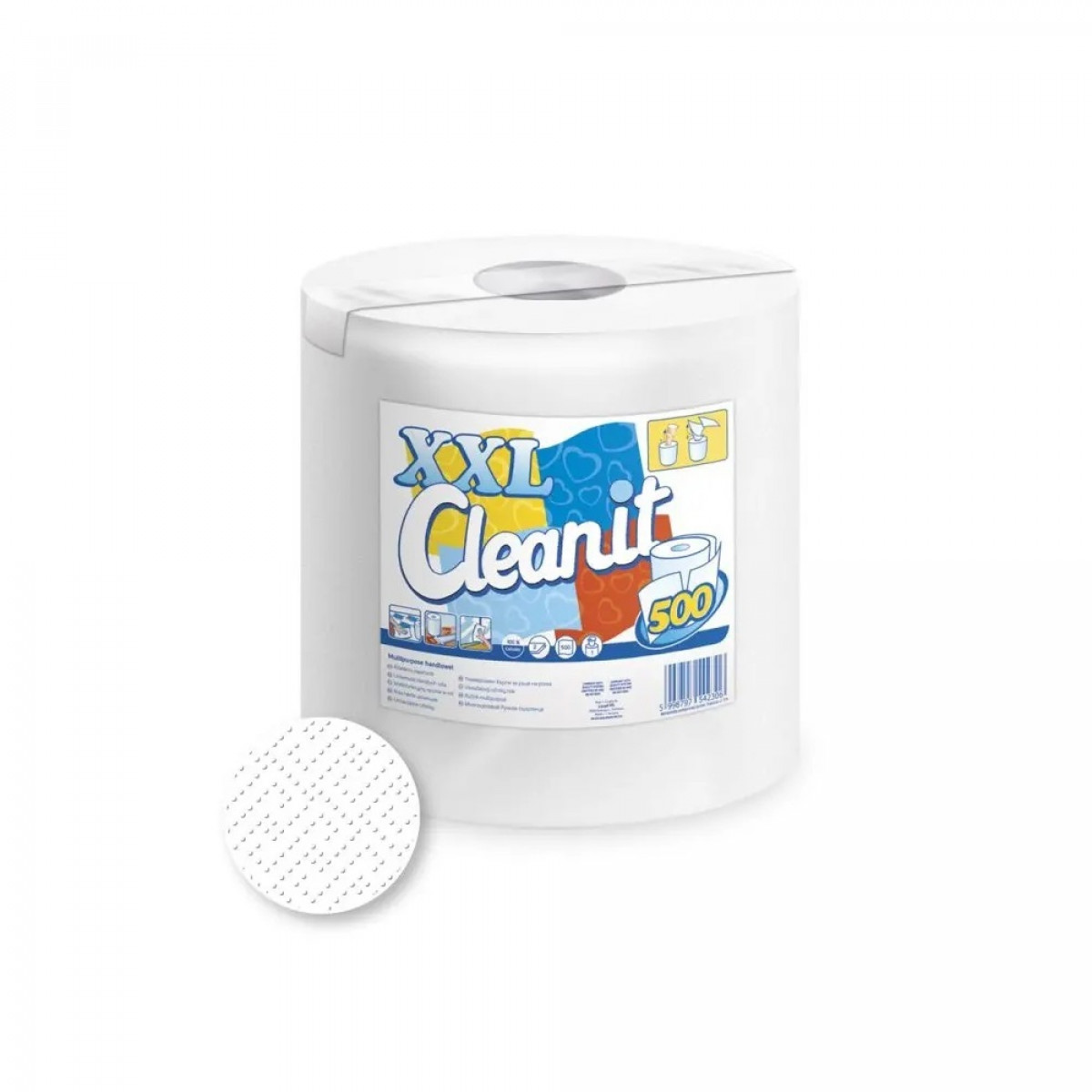 Lucart Cleanit XXL 500 papírtörlő 2 rétegű, hófehér, ragasztott, decor prégelt tekercses papírtörlő adagoló használatot nem igényel köszönhetően a tekercsenkénti csomagolásnak, amely megkönnyíti a belső adagolást és egyúttal megvédi a tekercset a szennyeződésektől tekercsátmérő.