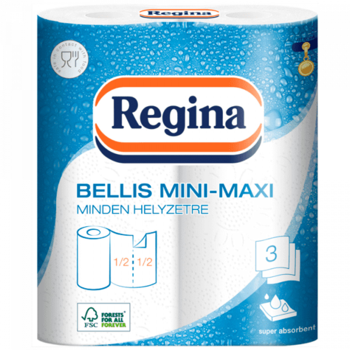 Háztartási papírtörlő kéztörlő 3 rétegű 100 lap/tekercs 2 tekercs/csomag Bellis Mini-Maxi fehér bemutatása