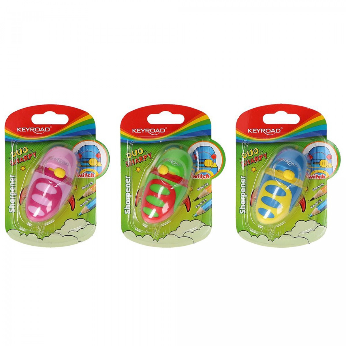 Hegyező 1 lyukú tartályos, fedeles, multifunkciós Keyroad Duo Sharpy vegyes színek bemutatása