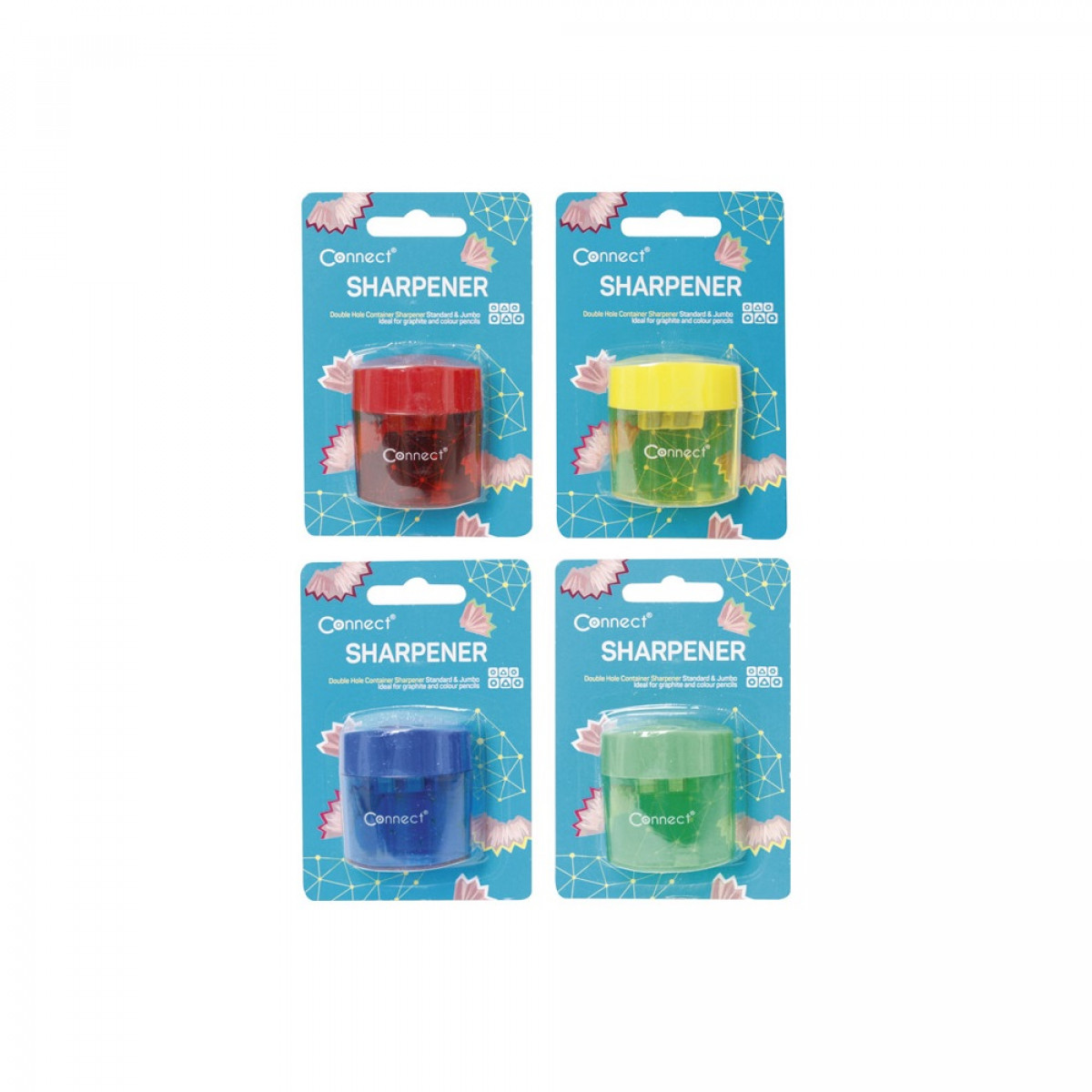 Hegyező 2 lyukú műanyag, tartályos Connect bliszteres