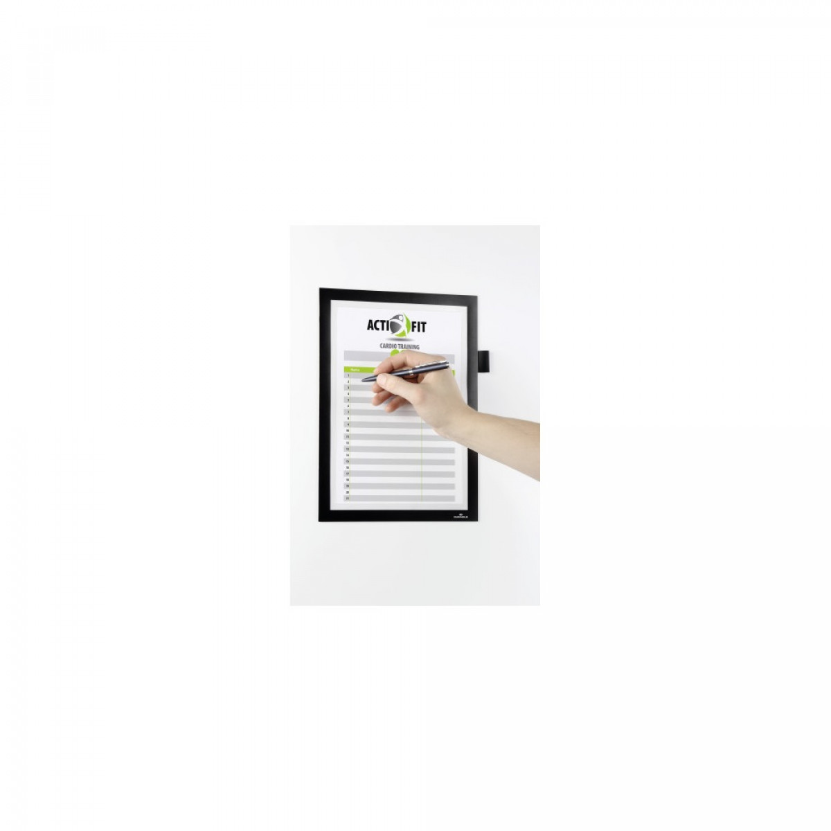 A DURAFRAME® NOTE infromációs keret lehetővé teszi, hogy közvetlenül jegyzeteljünk a kihelyezett dokumentumokra, pl. résztvevők aláírásának listája, takarítási jegyzőkönyv A4-es méretű, gyors, könnyen kezelhető kihelyezése, a professzionális megjelenéssel ötvözve. - kiváló megjelenés - az információk gyors és egyszerű cseréje a mágneses záródásnak köszönhetően - közvetlen jegyzetelési lehetőség a kihelyezett dokumentumon - fekvő és álló formátumban egyaránt használható - max. 5 db 80 g/m2-es papír tárolására alkalmas - tolltartó, mely minden klipszes tollhoz megfelelő - öntapadó hátlap, sima, kemény felületekreKatalóguskód: 24803Hiteles tájékoztatás: Elkötelezettek vagyunk termékeink biztonságának garantálásáért, nyomon követjük a termékbiztonsággal kapcsolatos valamennyi európai uniós és hazai szabályozást és biztosítjuk termékeink azoknak történő megfelelését. Az EU 2023/988-as számú Általános Termékbiztonsági Rendeletét (GPSR) is alkalmazzuk, így ha a termékeink biztonságát illetően fogyasztóként kérdése, észrevétele van, vagy esetleg balesetről van tudomása, kérjük, írja meg nekünk. GPSR: DURABLE Hunke & Jochheim GmbH & Co. KG Westfalenstrasse 77-79, D- 58636 Iserlohn, Germany info@durable.de www.durable.de