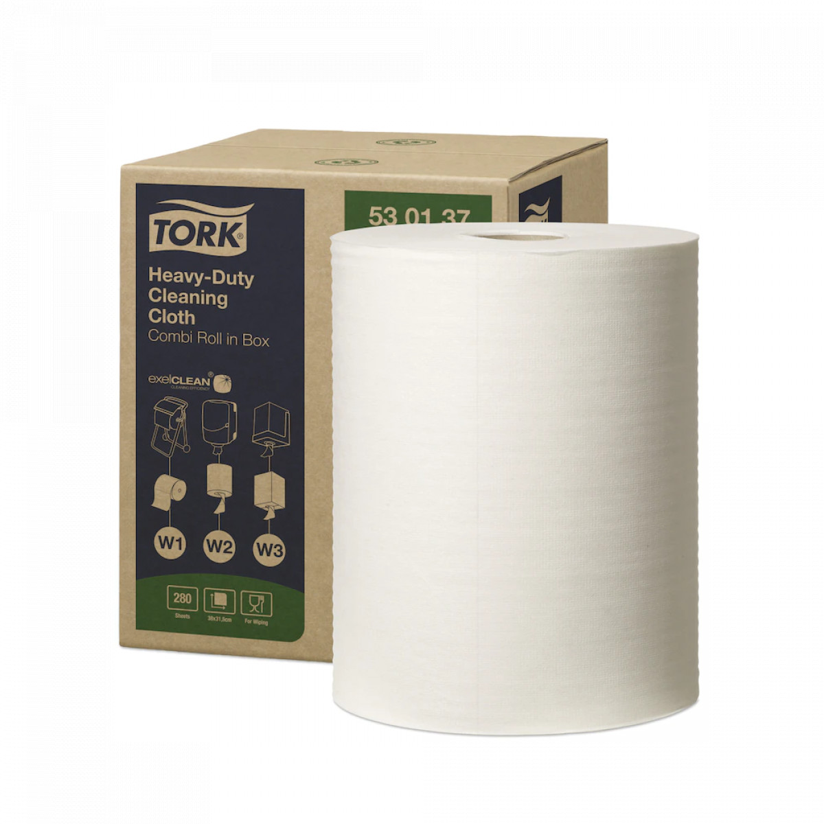 A Tork nagy teljesítményű tisztítókendő nedvszívó képessége igen nagy, a kendő maga pedig vastag és ellenálló: alkalmas az erős dörzsölésre, és közben nem foszlik szét. A legtöbb tisztítószerrel használható. Gyorsan és hatékonyan eltávolítja az olajat, a zsiradékot, a szennyeződéseket és a makacs foltokat, miközben védi a kezet a fémforgácsoktól és a hőtől. A kendő a Tork hordozható vagy falra szerelhető adagolóival használható, amelyek biztonságos és hatékony eszközök. Ezenfelül a Tork Maxi belsőmagos adagolóba vagy a Tork Maxi dobozos kombi tekercses adagolóba is behelyezhető, amivel lehetővé válik az egykezes adagolás.