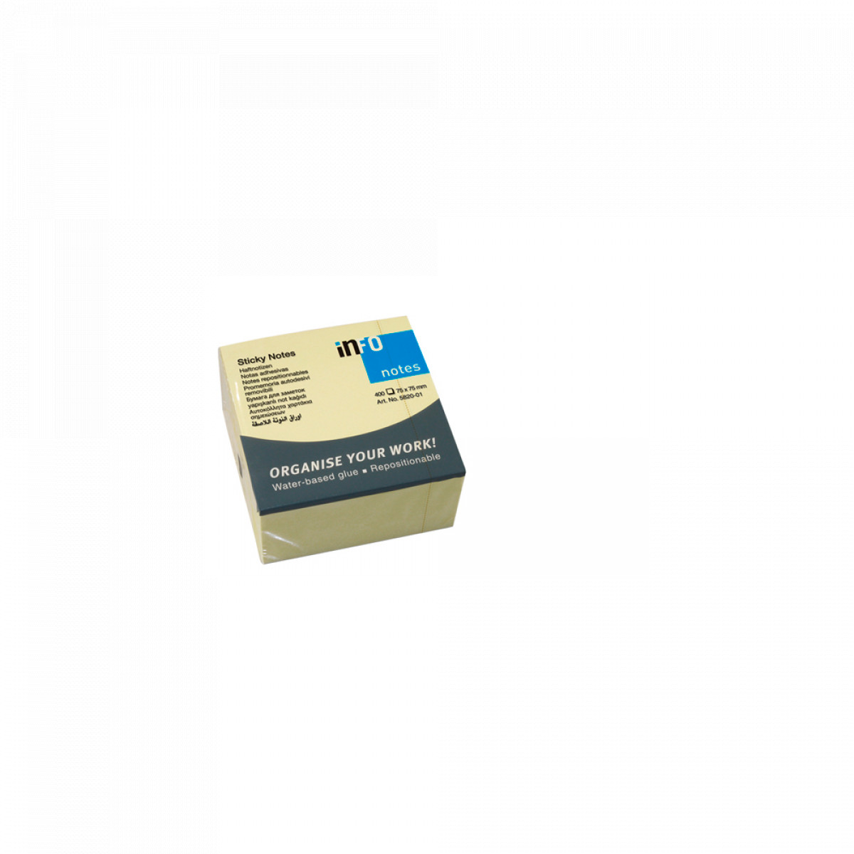 Jegyzettömb öntapadó, 75x75mm, 400lap, Info Notes sárga