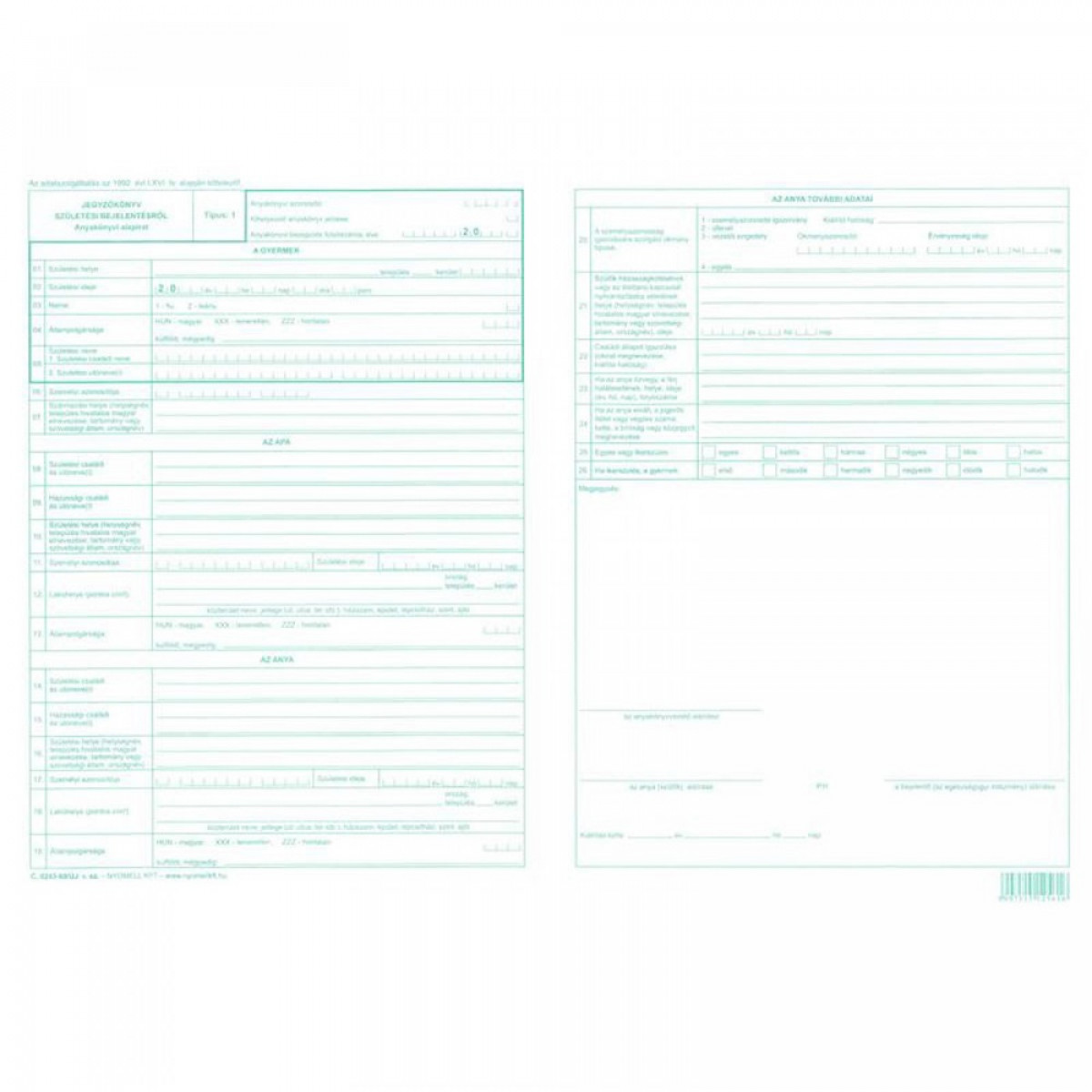 Jegyzőkönyv születési bejelentésről 2lap C.0243-69/2015 Katalóguskód: 14522 Hiteles tájékoztatás: Elkötelezettek vagyunk termékeink biztonságának garantálásáért, nyomon követjük a termékbiztonsággal kapcsolatos valamennyi európai uniós és hazai szabályozást és biztosítjuk termékeink azoknak történő megfelelését. Az EU 2023/988-as számú Általános Termékbiztonsági Rendeletét (GPSR) is alkalmazzuk, így ha a termékeink biztonságát illetően fogyasztóként kérdése, észrevétele van, vagy esetleg balesetről van tudomása, kérjük, írja meg nekünk.
