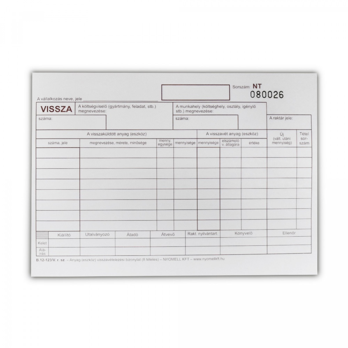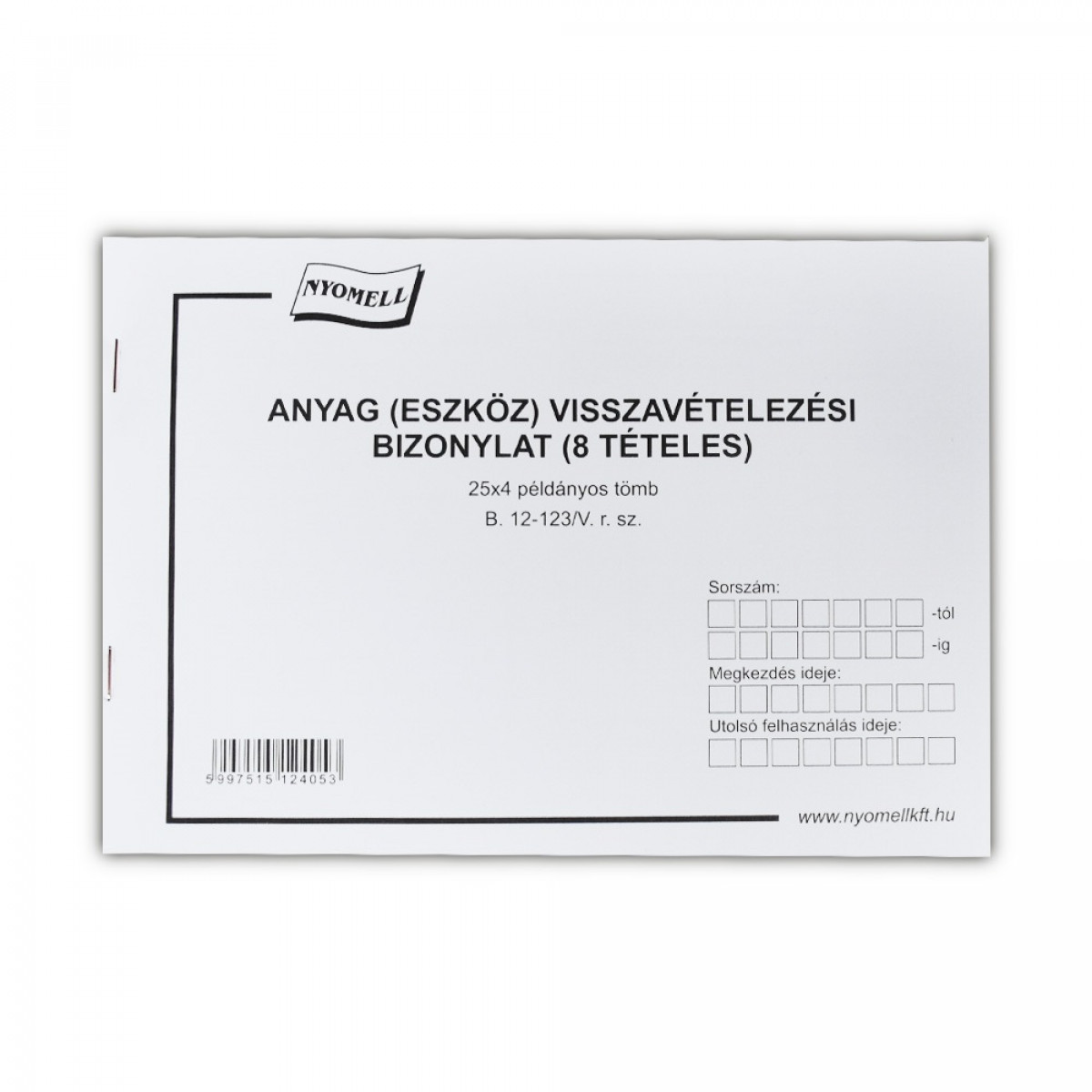 Készlet visszavételezési bizonylat 8 tételes 25x4 lapos tömb A/5 fekvő B.12-123/V Bluering bemutatása