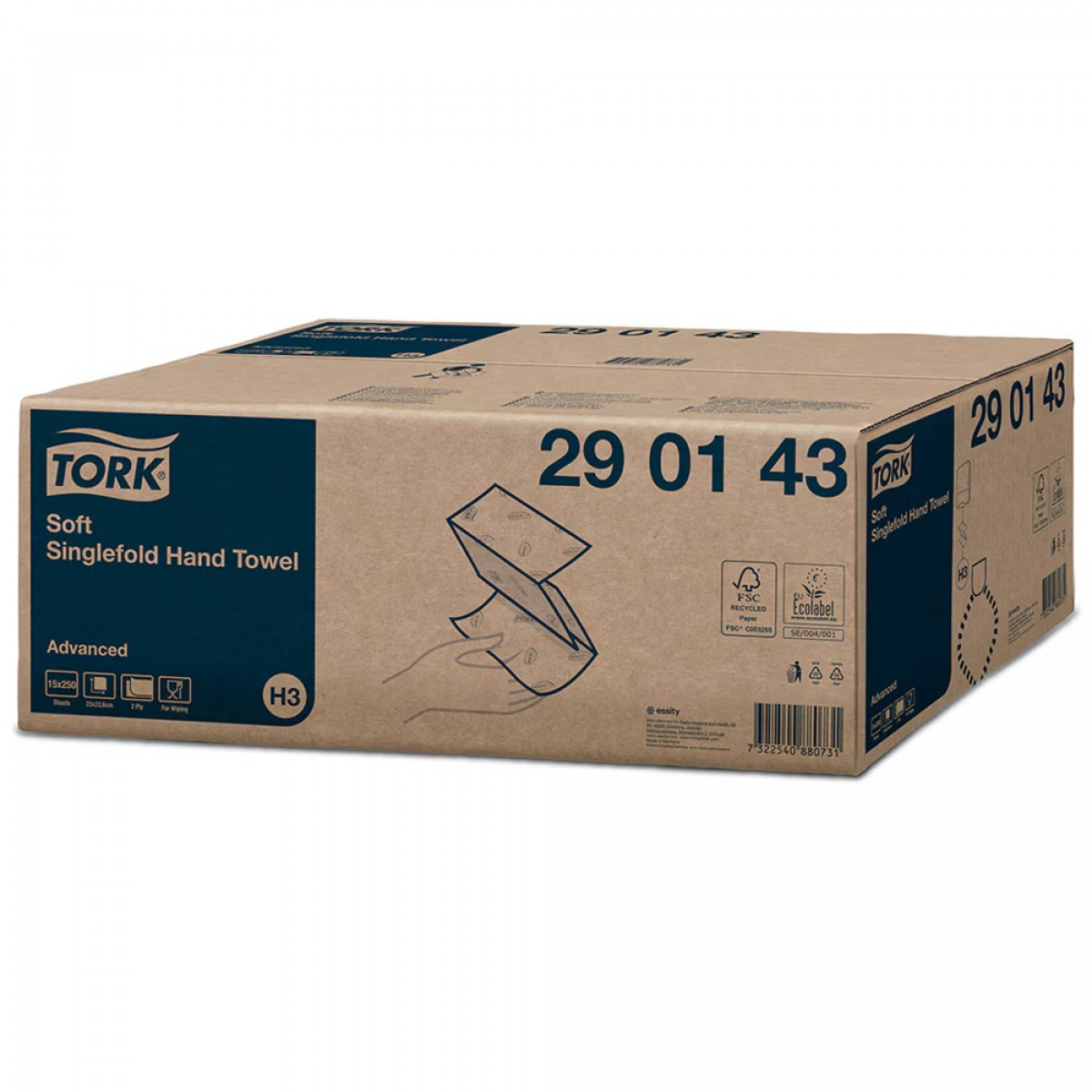 Tork egykezes kézi törülköző, egyedi, puha levélmintázatú 2 rétegű Hajtás rendszer: H3 - C-hajtás és ZZ