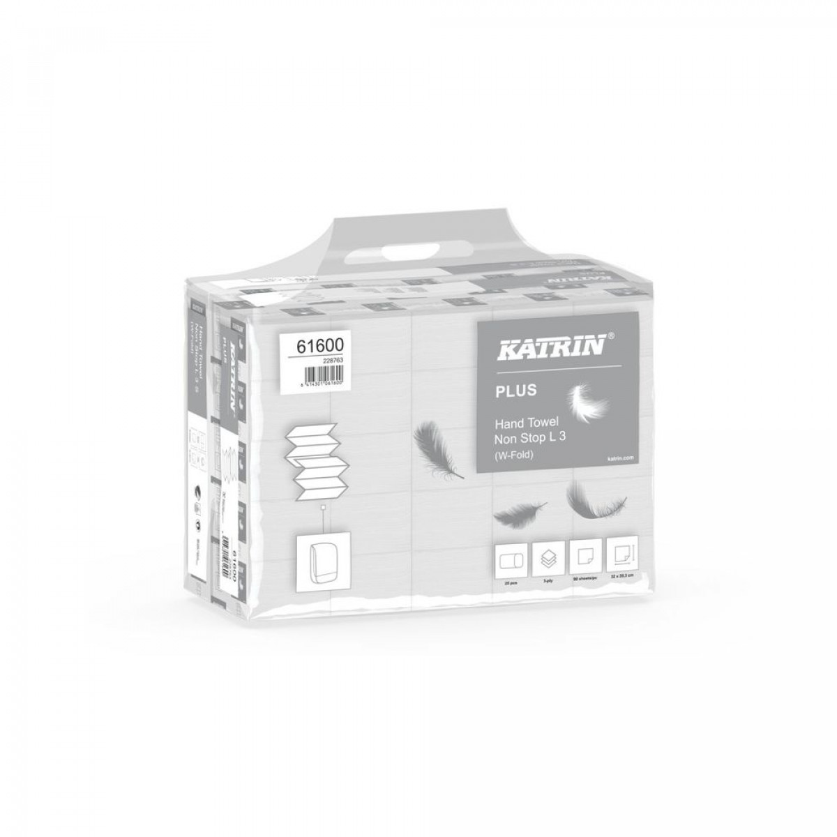 Kéztörlő W hajtogatású 3 rétegű 90 lap/cs 25 csomag/karton Katrin Plus Non stop L3 hófehér_61600 bemutatása