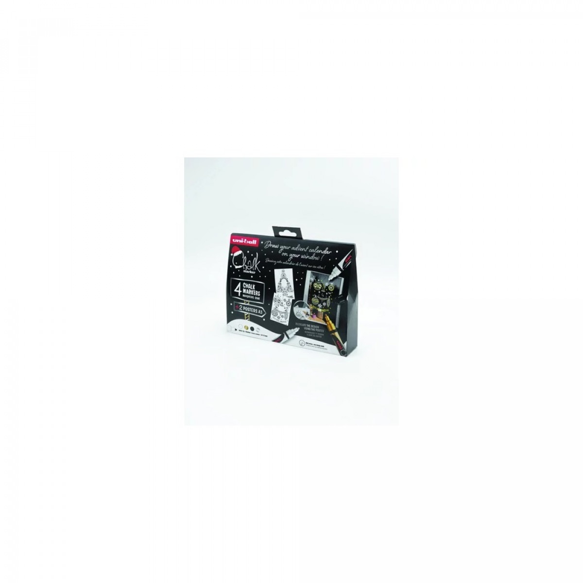 A készletben található 2db A3-as papír sablon, melynek segítségével bárki könnyedén készíthet ablak dekorációt karácsonyra. A felrajzolt minta tartós, elég a karácsonyig hátralévő napok számát letörölni (nedves ruhával).