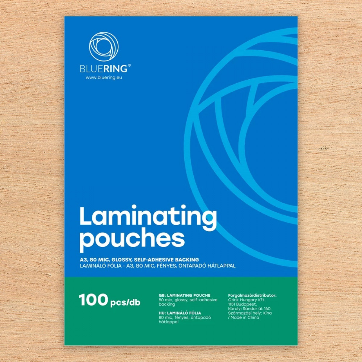 Lamináló fólia A3, 80 micron öntapadó hátlappal 100 db/doboz, Bluering®, bemutatása