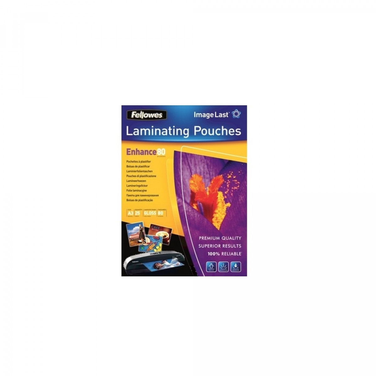 Lamináló fólia, A3, 80 mikron, fényes, 25 db/doboz, Fellowes® bemutatása