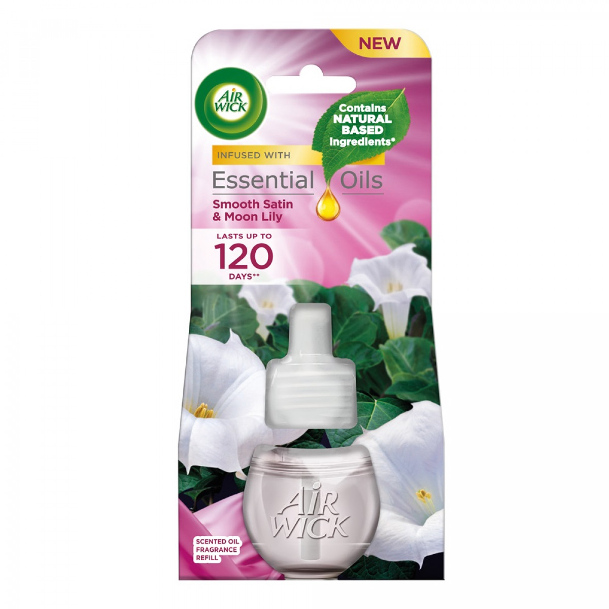 Légfrissítő utántöltő 19 ml elektromos készülékbe AirWick Bársony Szatén és Éji liliom bemutatása