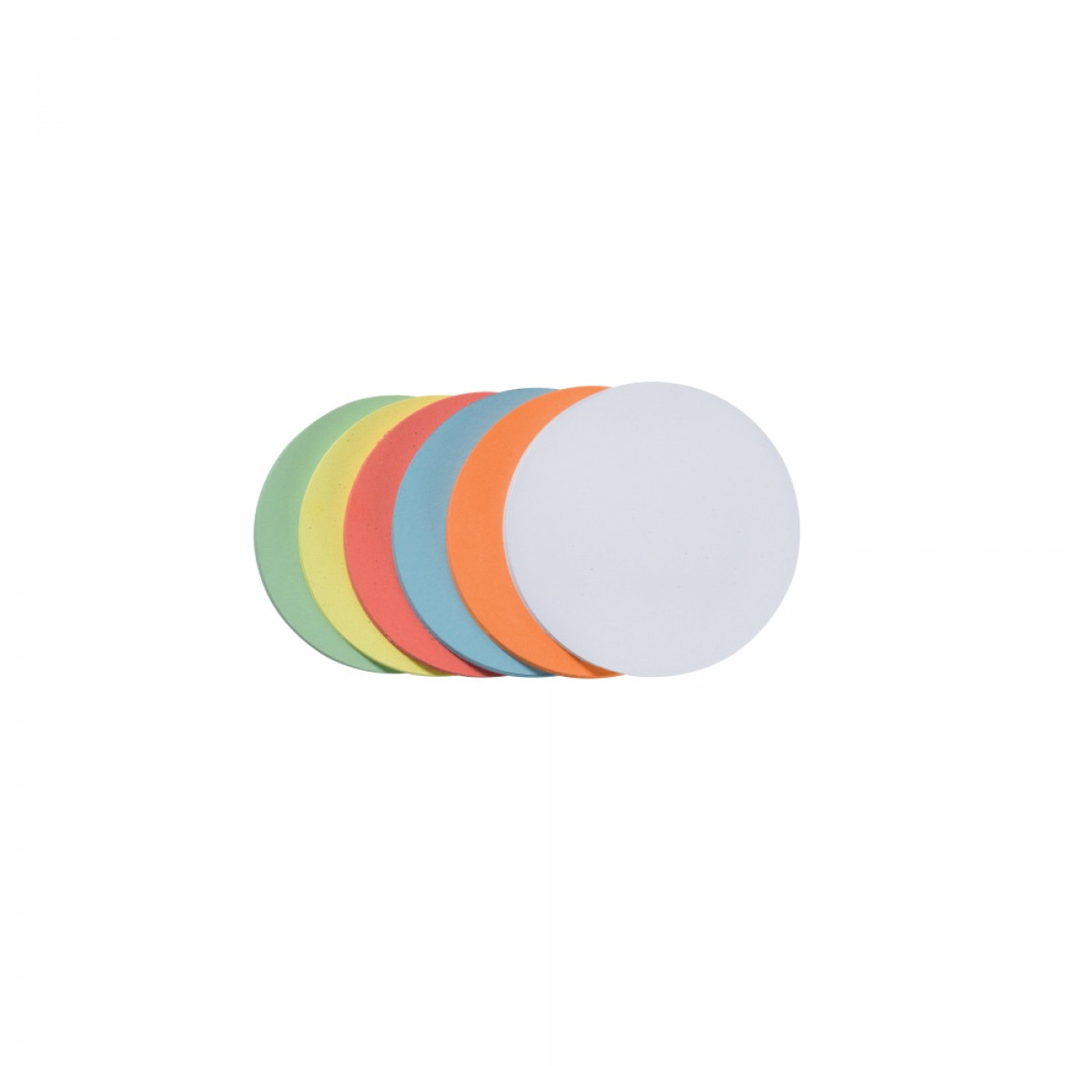 130 gsm 100%-ban környezetbarát újrahasznosított papírból készült. Elnyerte a "Kék Angyal" ökocímkét. Válogatott színek. A kialakítás nem öntapadó. Kivitel: körök. Mérete: ? 14 cm.Csomag tartalma: 500 db