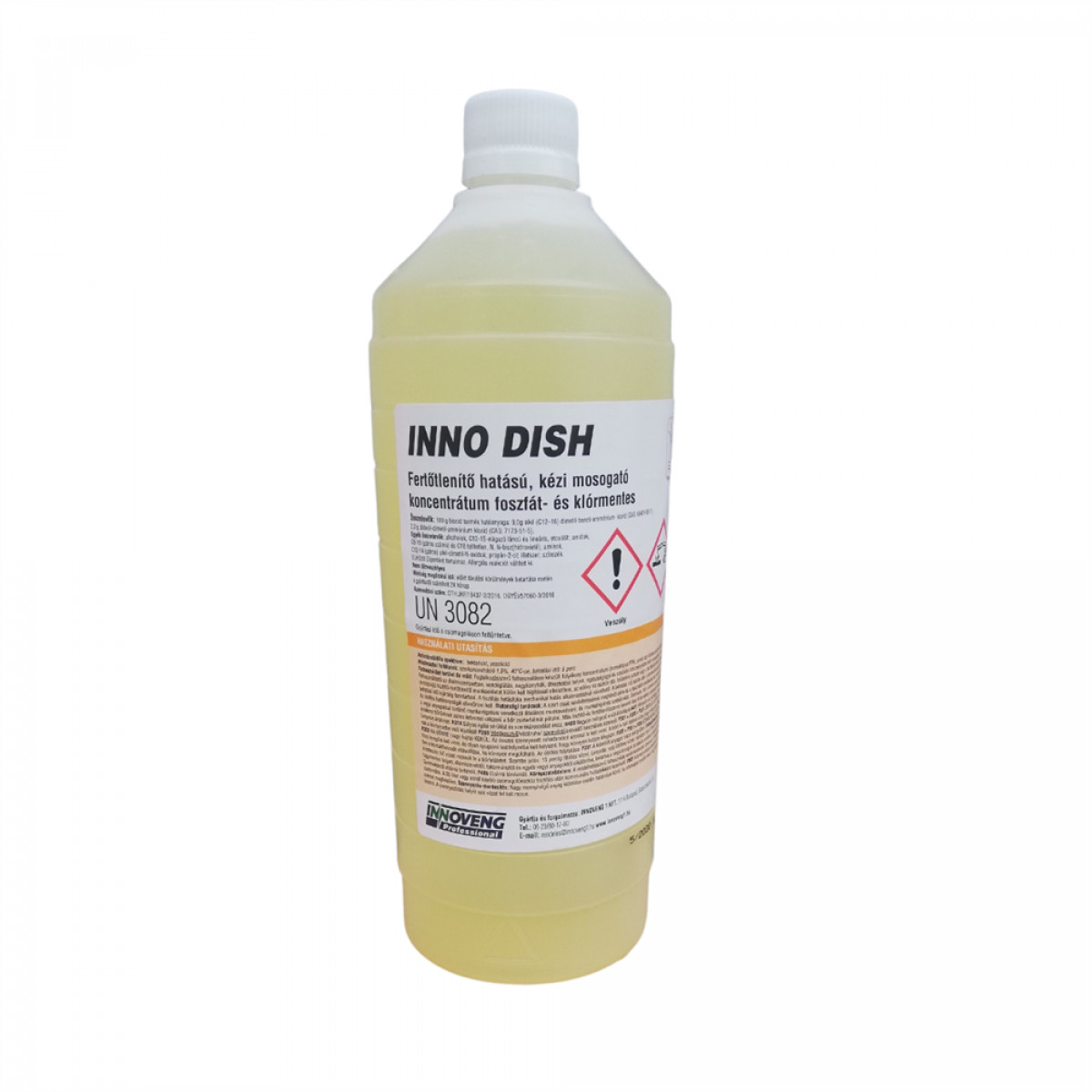 A Mosogatószer 1 liter kézi fertőtlenítő hatással Inno-Dish termék alkalmazásakor ügyeljen a biztonságra! Használat előtt mindig olvassa el a címkét és a használati útmutatót!