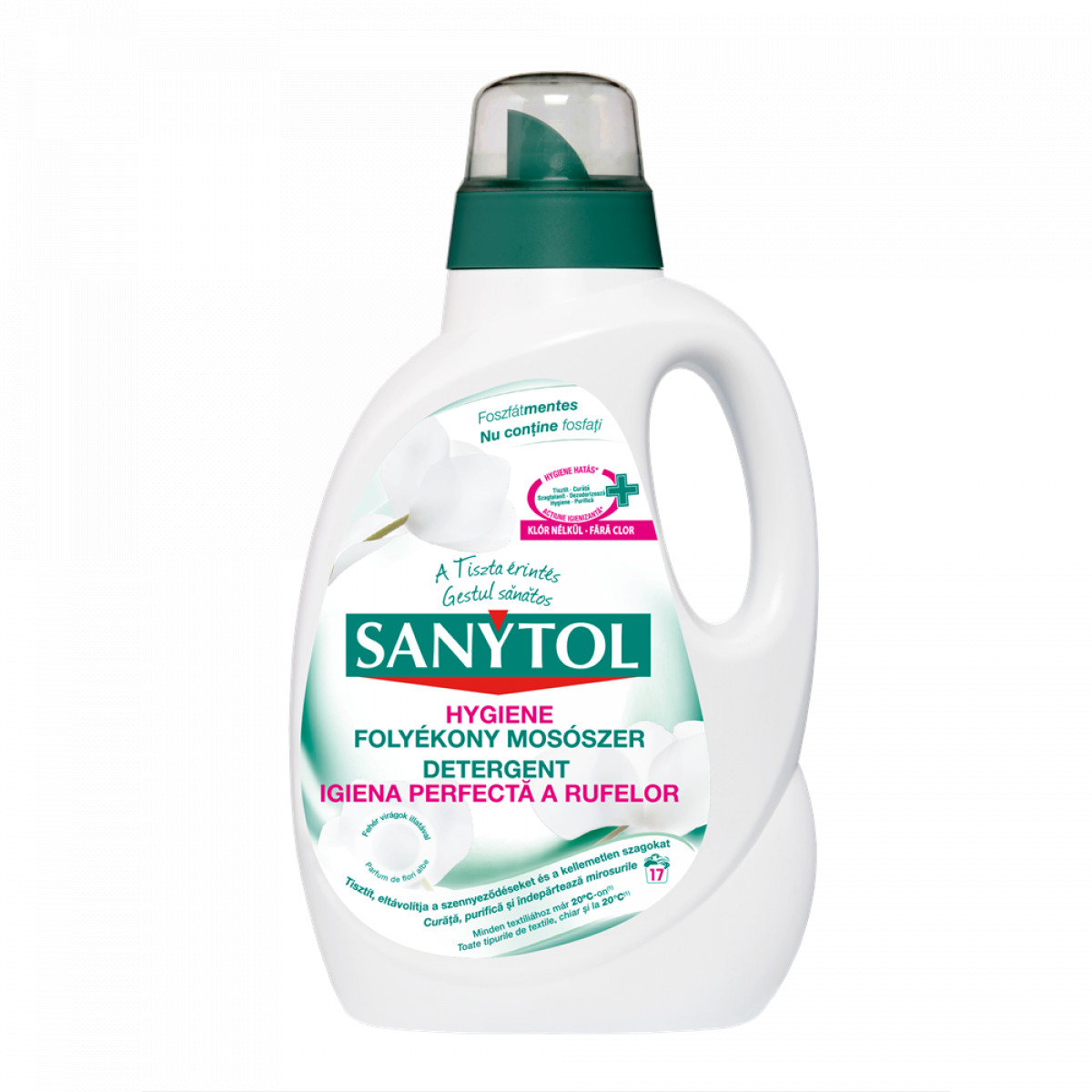 Mosógél 1,65 liter (17 mosás) fehér és színes ruhákhoz Sanytol Hygiene bemutatása