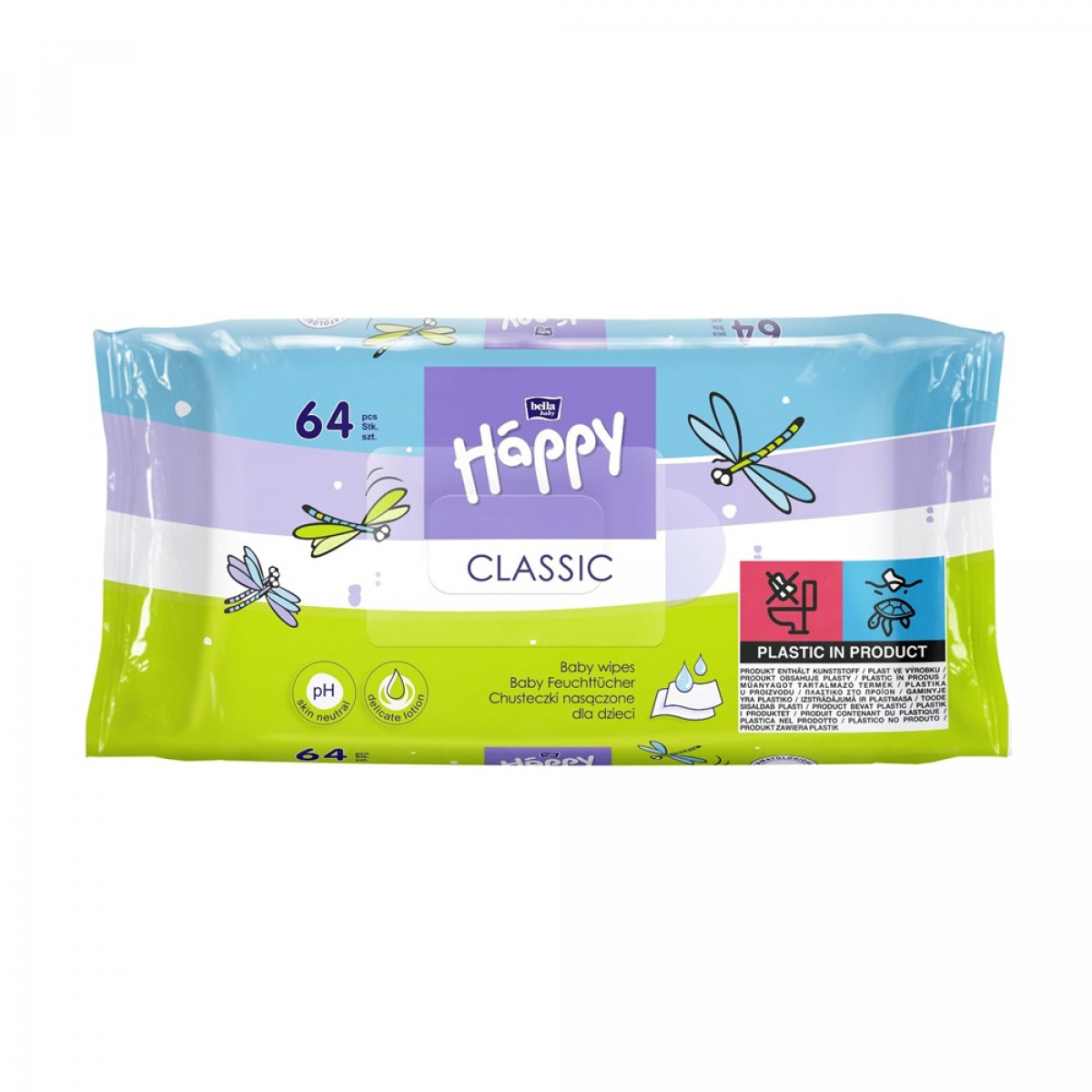 Nedves törlőkendő E-vitaminnal 64 lap/csomag Bella Happy Classic bemutatása