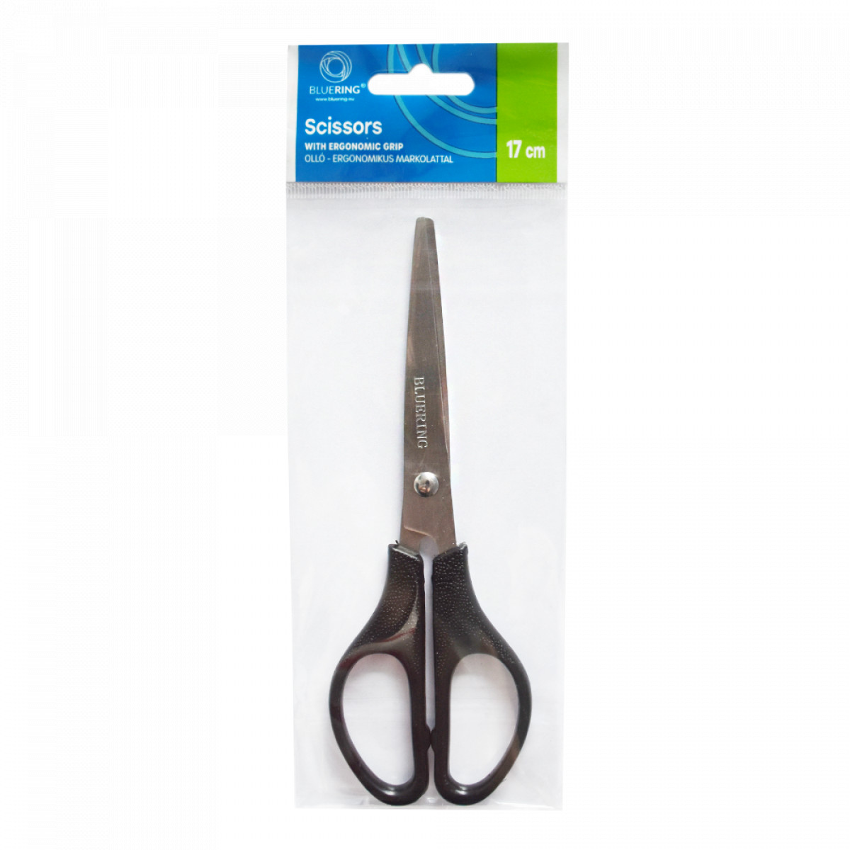 Olló 17cm, műanyag fekete nyél hegyes penge Bluering®