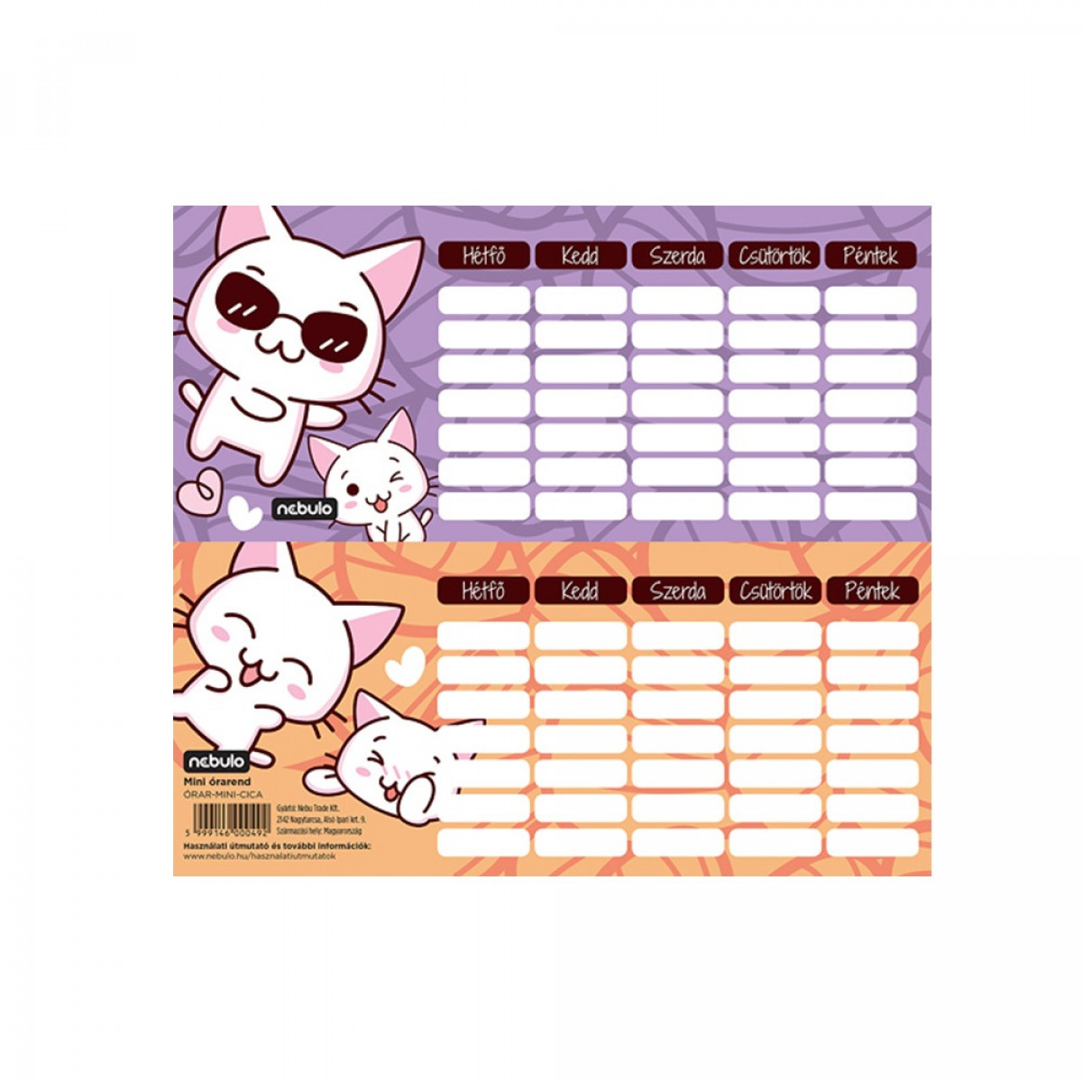 Órarend egylapos Cicás, 25 db/csomag, Nebulo bemutatása