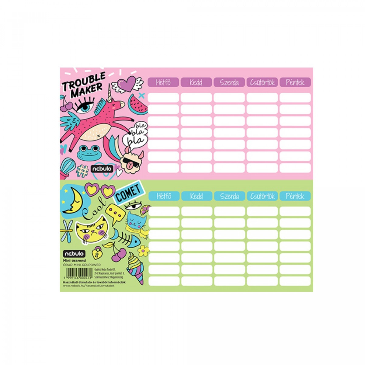 Órarend egylapos Girl Power, 25 db/csomag, Nebulo