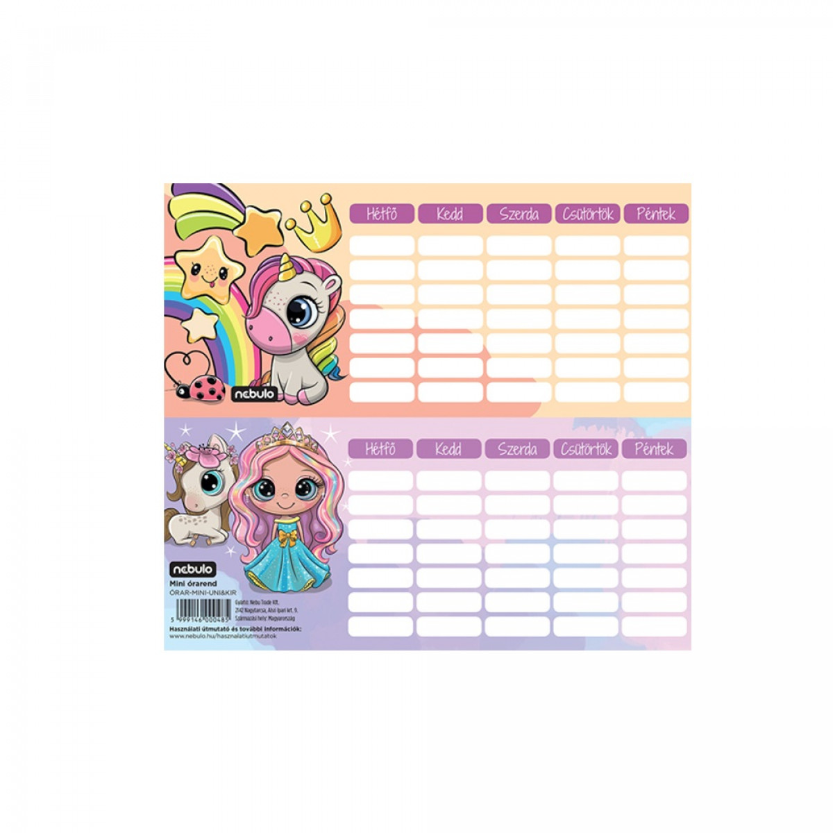 Órarend egylapos Uni/Kir, 25 db/csomag, Nebulo