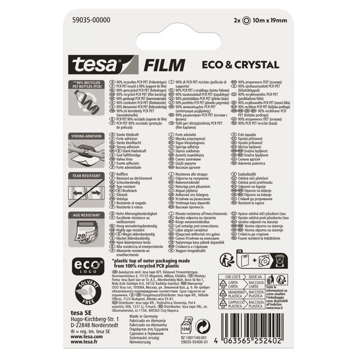 Ragasztószalag 19mmx10m irodai átlátszó újrahasznosított Tesa Eco & Crystal 2db/bliszter
