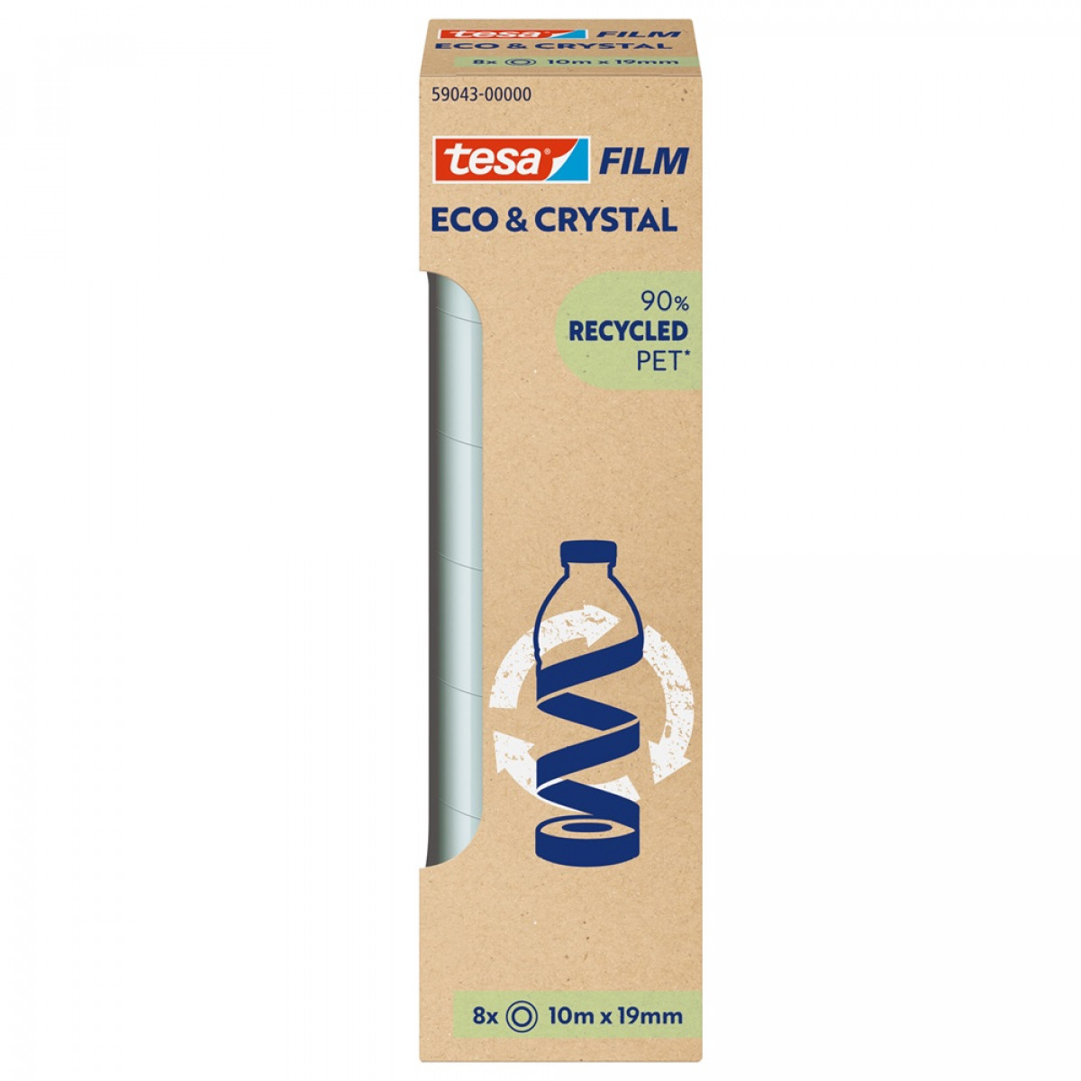 Bemutatjuk a tesafilm® Eco & Crystal szalagot, amely a klasszikus tesafilm® jól ismert tulajdonságait ötvözi a környezetbarát jellemzőkkel. Rendkívül átlátszó, sokoldalú, erős, oldószermentes ragasztóval, és 90%-ban PET-palackok újrahasznosításából származó műanyagból készült hordozóanyaggal. Ezenkívül a tekercs magja 100%-ban újrahasznosított műanyagból készül, és csendesen letekerhető. Az összes tesafilm® szalagadagolóval kompatibilis.