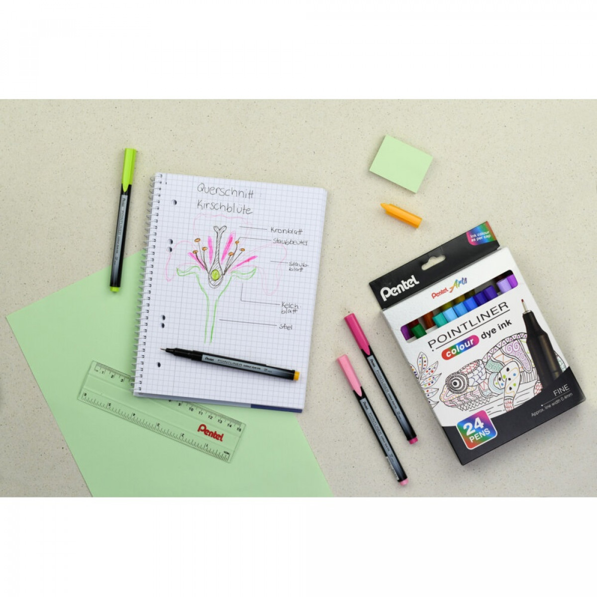 A Pentel színes tűfilc egy vékony hegyű, műanyag írócsúccsal és vízbázisú (dye) tintával ellátott tűfilc, amely a Pentelre jellemző kiemelkedő minőséget képviseli. Kifejezetten ajánlott finom íráshoz, javításhoz, rajzoláshoz és vázlatkészítéshez, hiszen a 0,4 mm-es hegy pontos és precíz vonalvezetést tesz lehetővé. Az élénk, gazdag színeknek köszönhetően a munka nemcsak pontos, hanem látványos is lehet. A tűfilc 24 különböző színben érhető el, így minden feladathoz vagy kreatív projekthez megtalálható a megfelelő árnyalat. Használat után a tinta kiszáradásának elkerülése érdekében mindig gondosan zárd vissza a kupakot. A Pentel tűfilc megbízható társ a mindennapokban, legyen szó tanulásról, munkáról vagy szabadidős alkotásról.1 darab türkizkék tűfilc